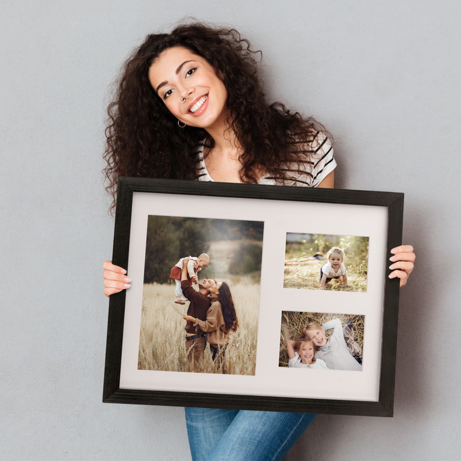 Black Deep Multi-Frame for 3 Photos: 2x 4 x 5 in (9 x 13 cm) + 7 x 9 in (18 x 24 cm)