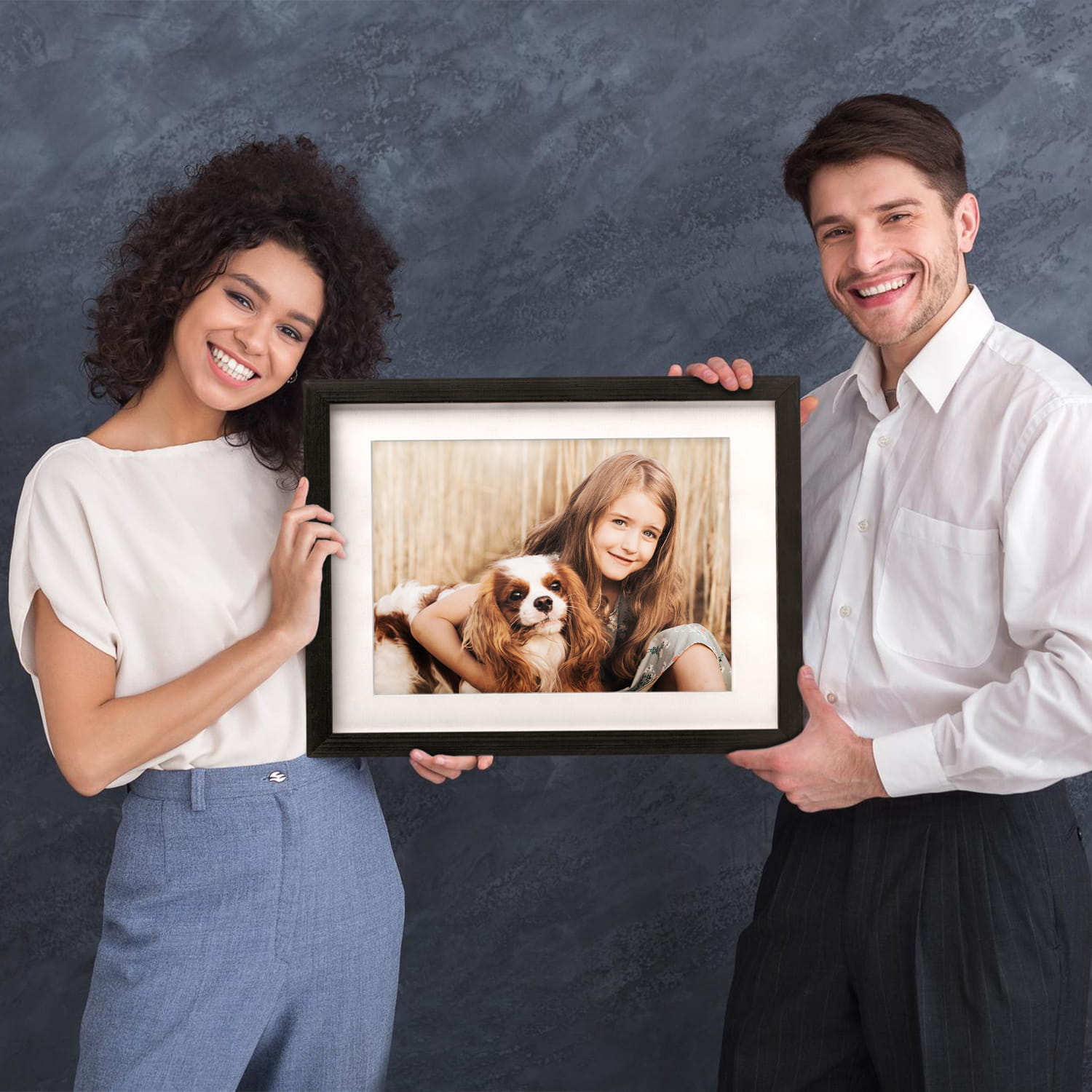 The frame can be placed on furniture or hung on the wall. Thanks to its high profile, it achieves a modern effect of distancing the image from the surface, which looks good in both home and commercial interiors.