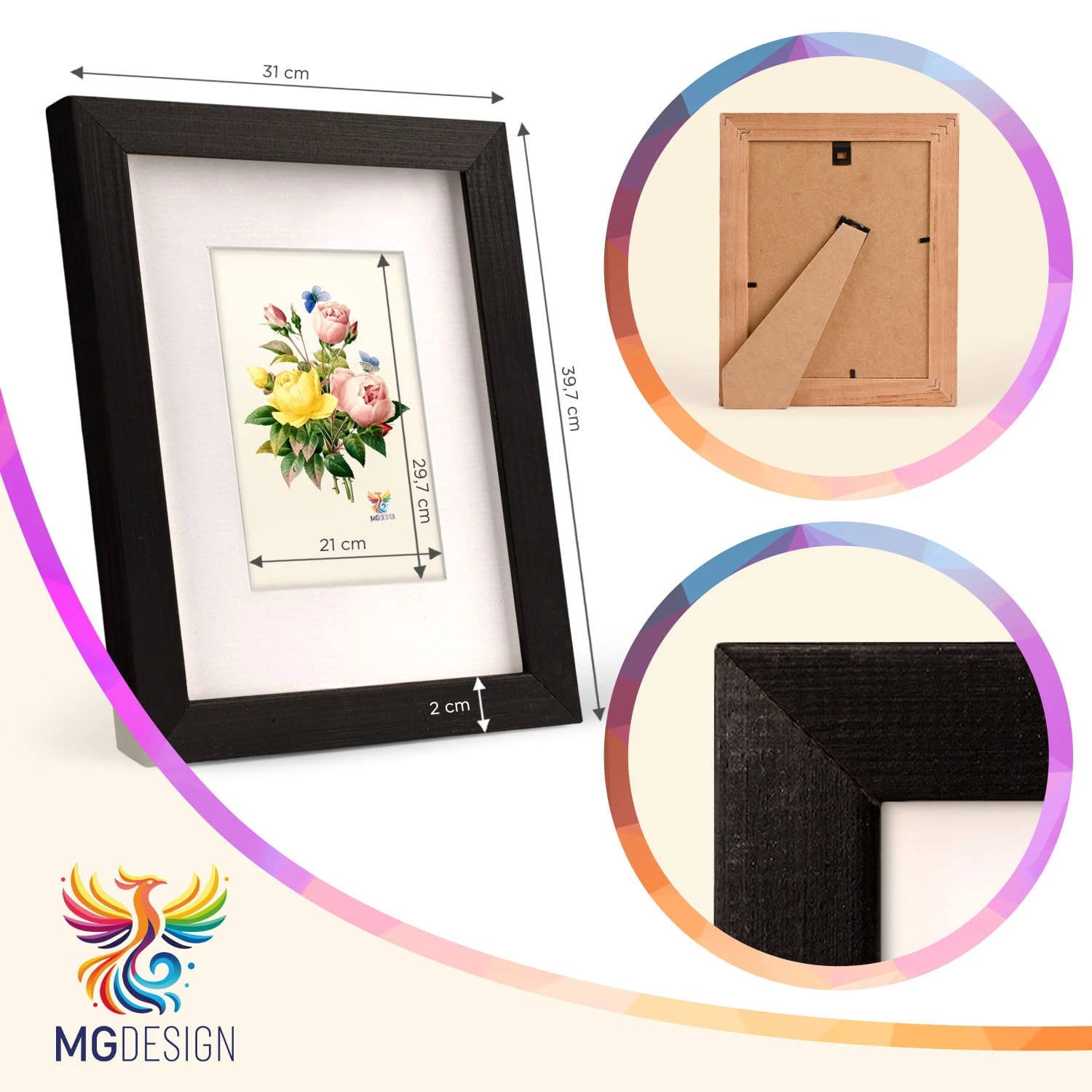 Black deep photo frame A4 8 x 12 in (21 x 29,7 cm), made of wood