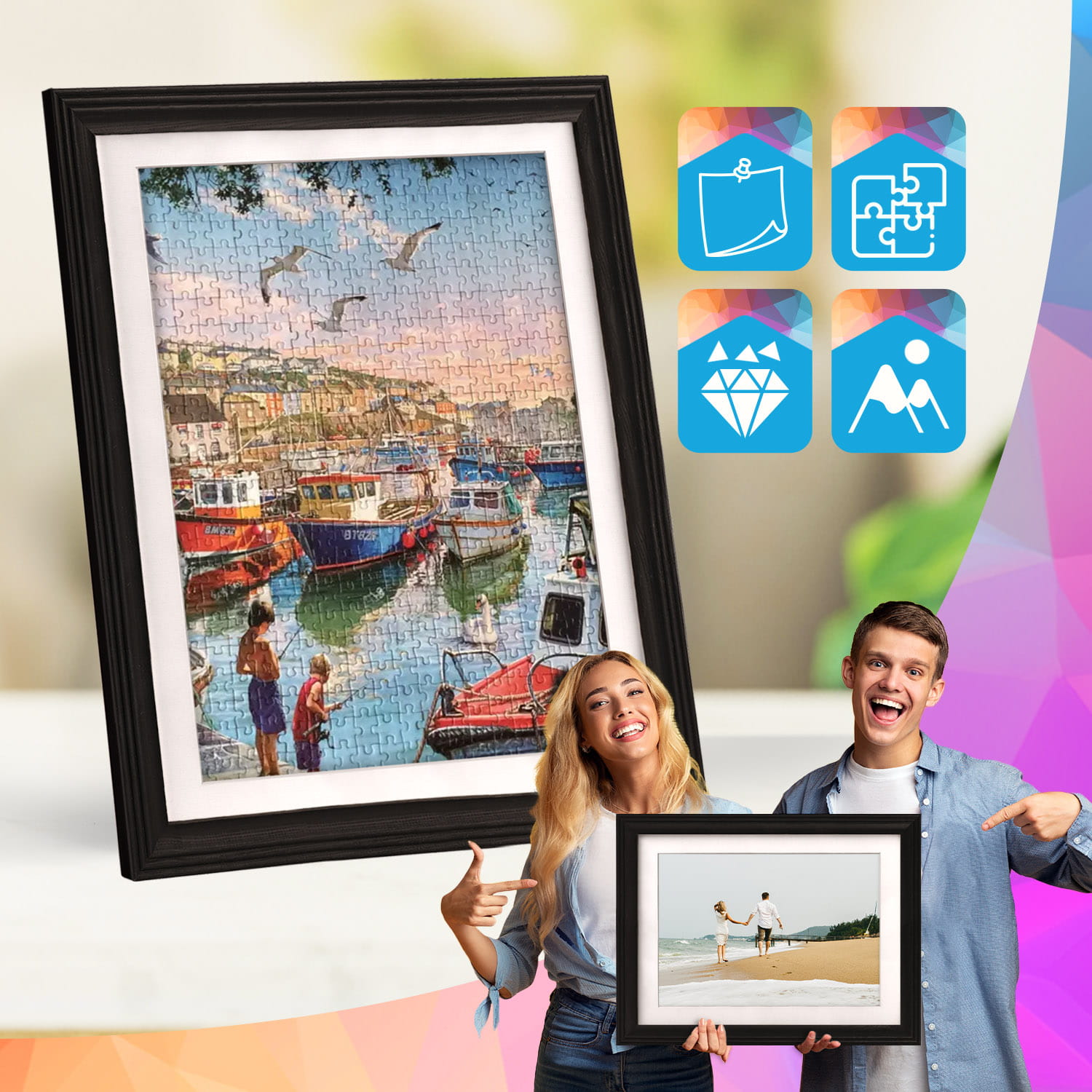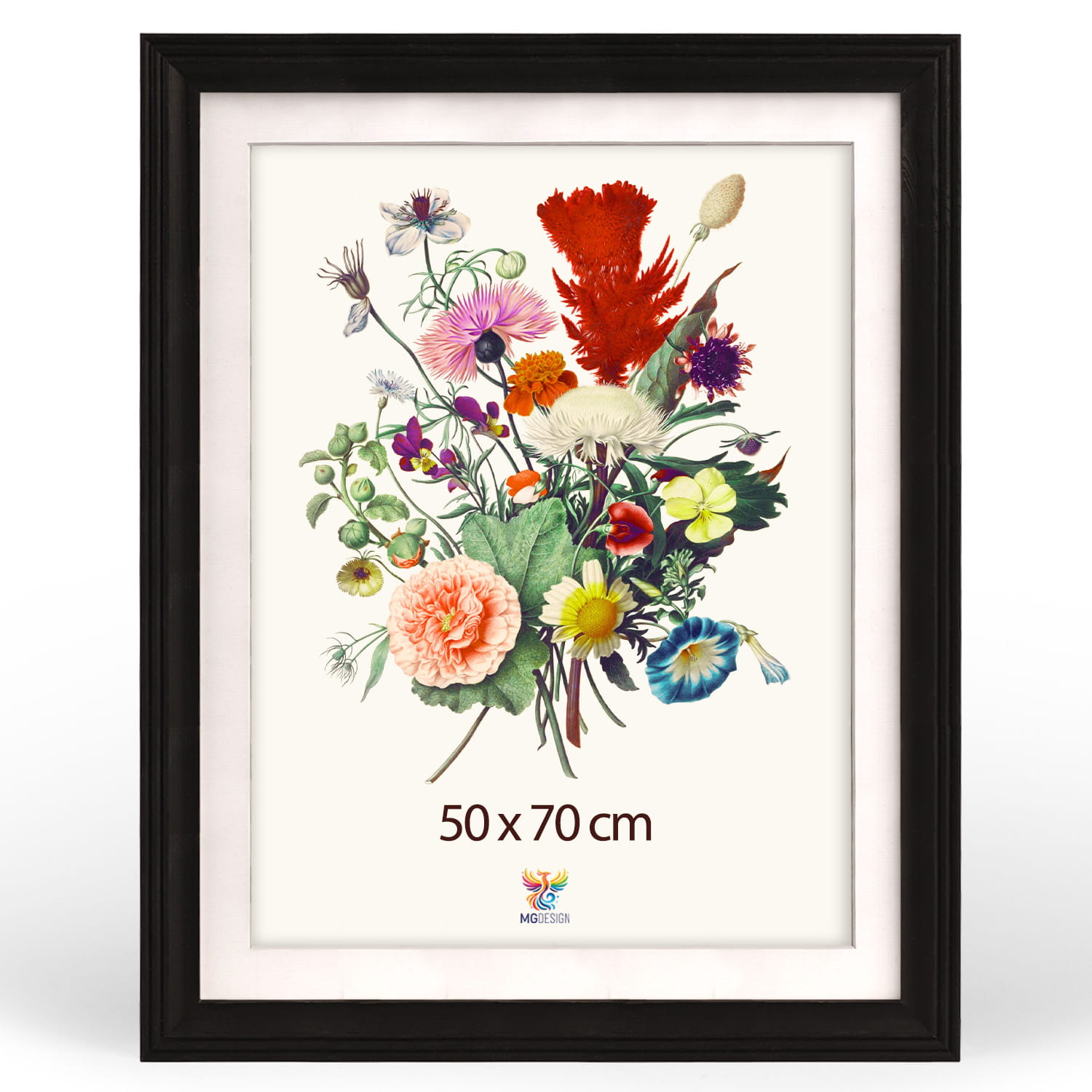 The frame can be displayed on furniture or on the wall. Thanks to the carefully crafted frame profile, the whole thing adheres firmly to the surface, and the presented motif remains the central element of the decoration. The frame is perfect for the home, office and gallery walls.