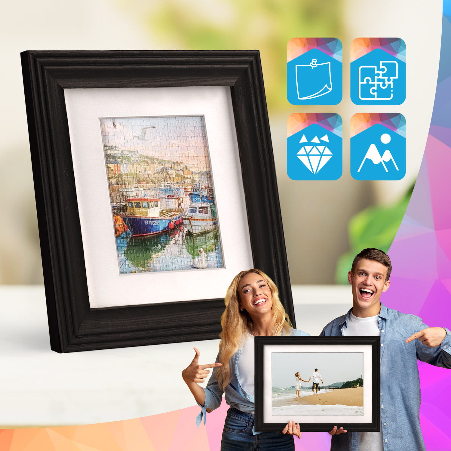 Black milled photo frame A4 8 x 12 in (21 x 29,7 cm), made of wood