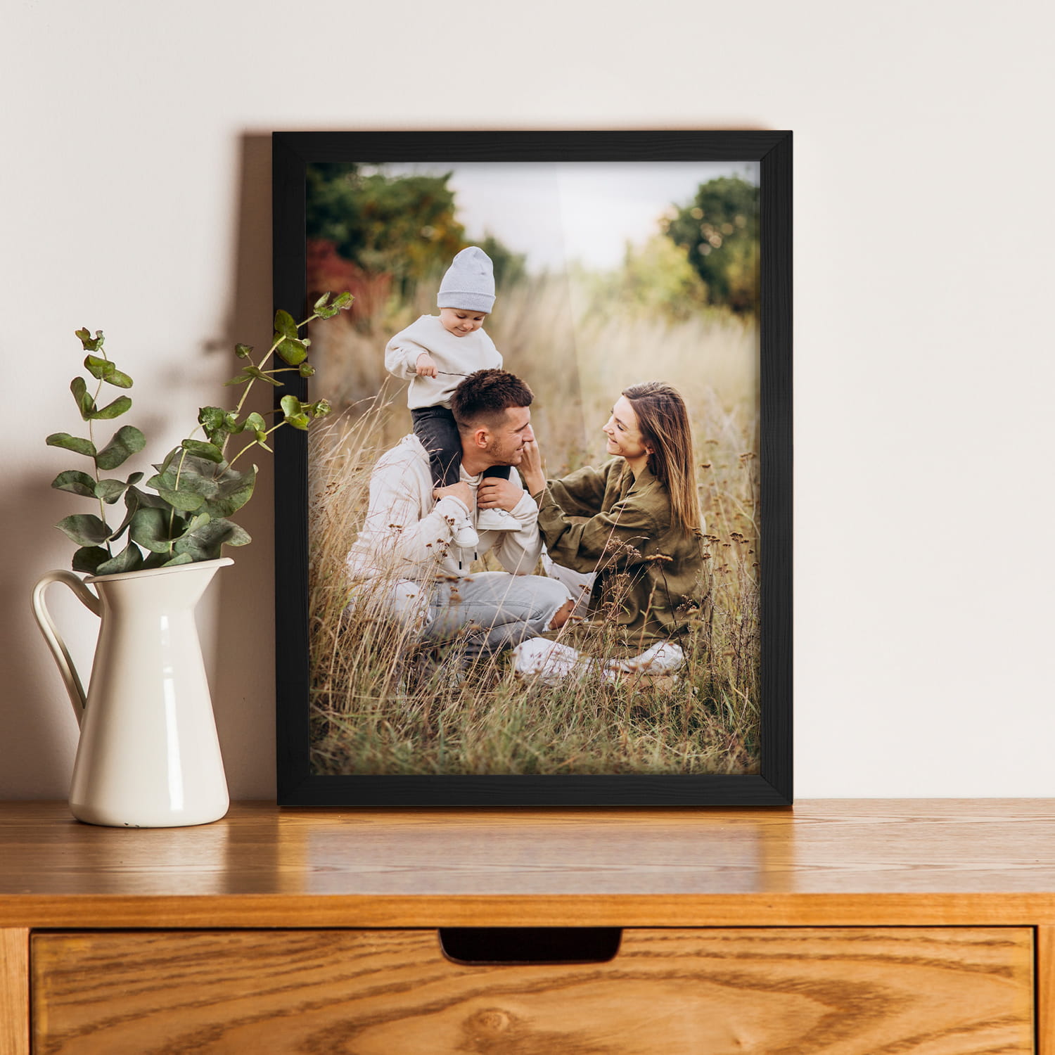 A wooden frame is an aesthetic and universal solution for framing photos, posters, graphics and decorative prints. The classic frame profile gives the frame an elegant look and clearly emphasises the presented motif without dominating the content. The frame is made of carefully processed natural wood, preserving the visible structure of the material, which gives the whole a natural and timeless character. The front of the frame is made of lightweight and damage-resistant plexiglass, which is a safer alternative to traditional glass and ensures good visibility of the framed work. The stable HDF board and solid metal hangers allow for quick installation and easy replacement of the contents without the use of tools.