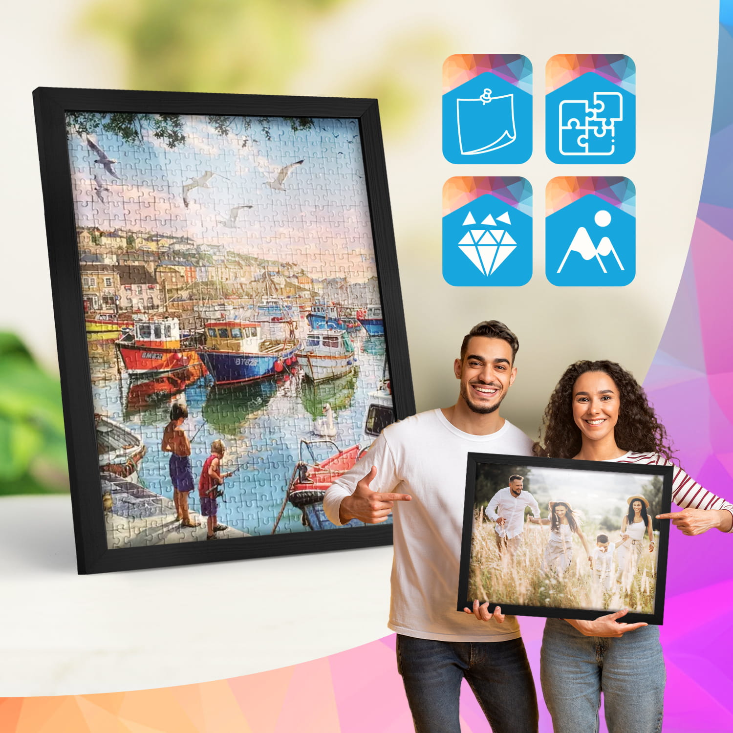 A wooden frame is an aesthetic and universal solution for framing photos, posters, graphics and decorative prints. The classic frame profile gives the frame an elegant look and clearly emphasises the presented motif without dominating the content. The frame is made of carefully processed natural wood, preserving the visible structure of the material, which gives the whole a natural and timeless character. The front of the frame is made of lightweight and damage-resistant plexiglass, which is a safer alternative to traditional glass and ensures good visibility of the framed work. The stable HDF board and solid metal hangers allow for quick installation and easy replacement of the contents without the use of tools.