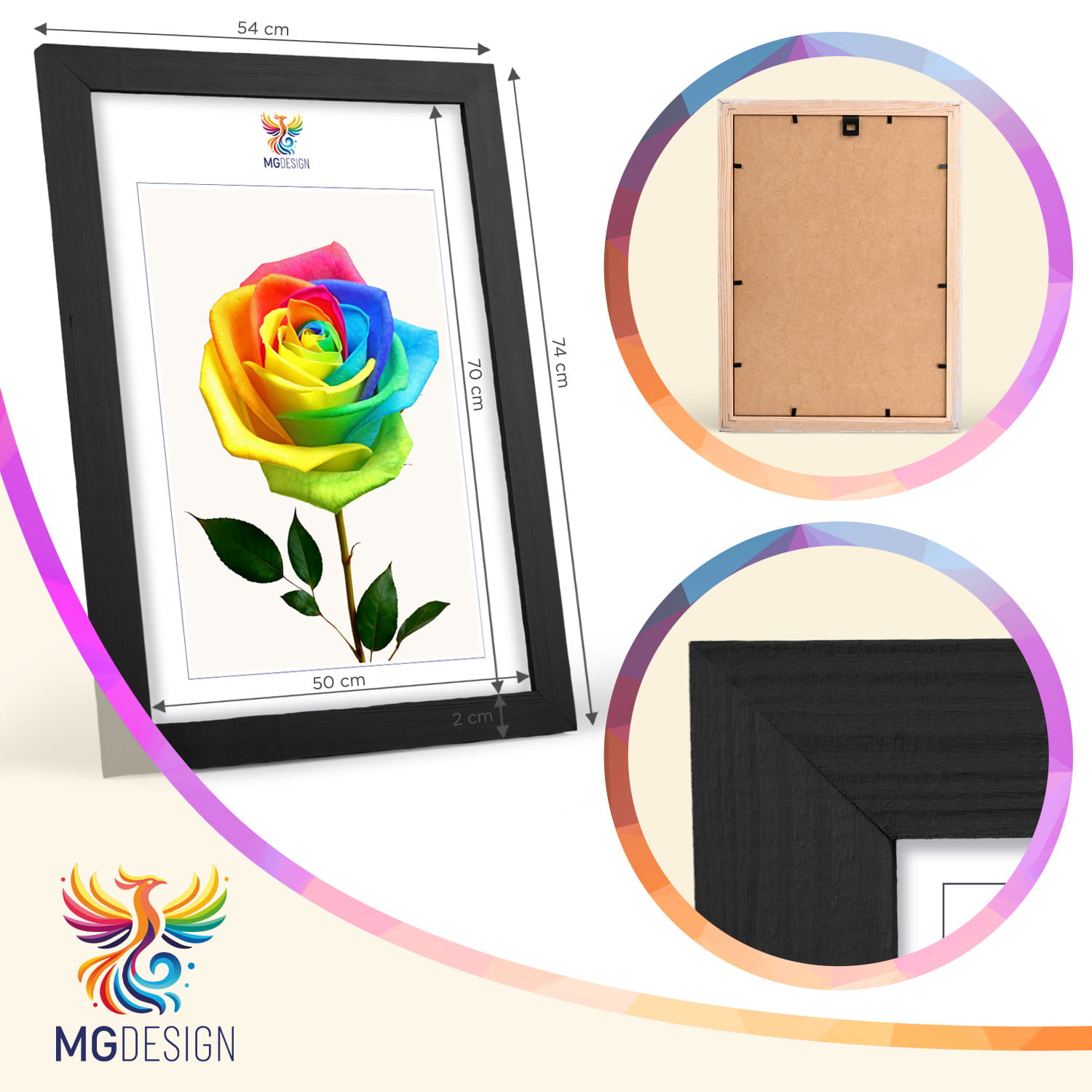 Black photo frame 20 x 28 in (50 x 70 cm), made of natural wood