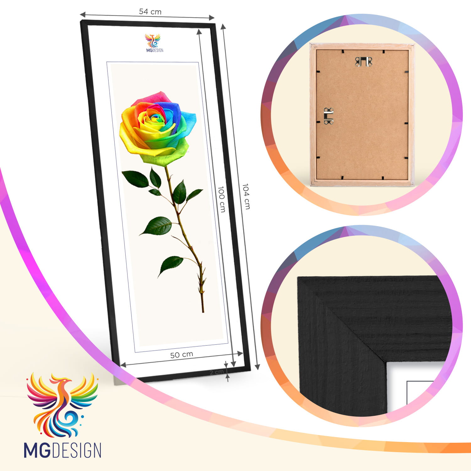 A wooden frame is an aesthetic and universal solution for framing photos, posters, graphics and decorative prints. The classic frame profile gives the frame an elegant look and clearly emphasises the presented motif without dominating the content. The frame is made of carefully processed natural wood, preserving the visible structure of the material, which gives the whole a natural and timeless character. The front of the frame is made of lightweight and damage-resistant plexiglass, which is a safer alternative to traditional glass and ensures good visibility of the framed work. The stable HDF board and solid metal hangers allow for quick installation and easy replacement of the contents without the use of tools.