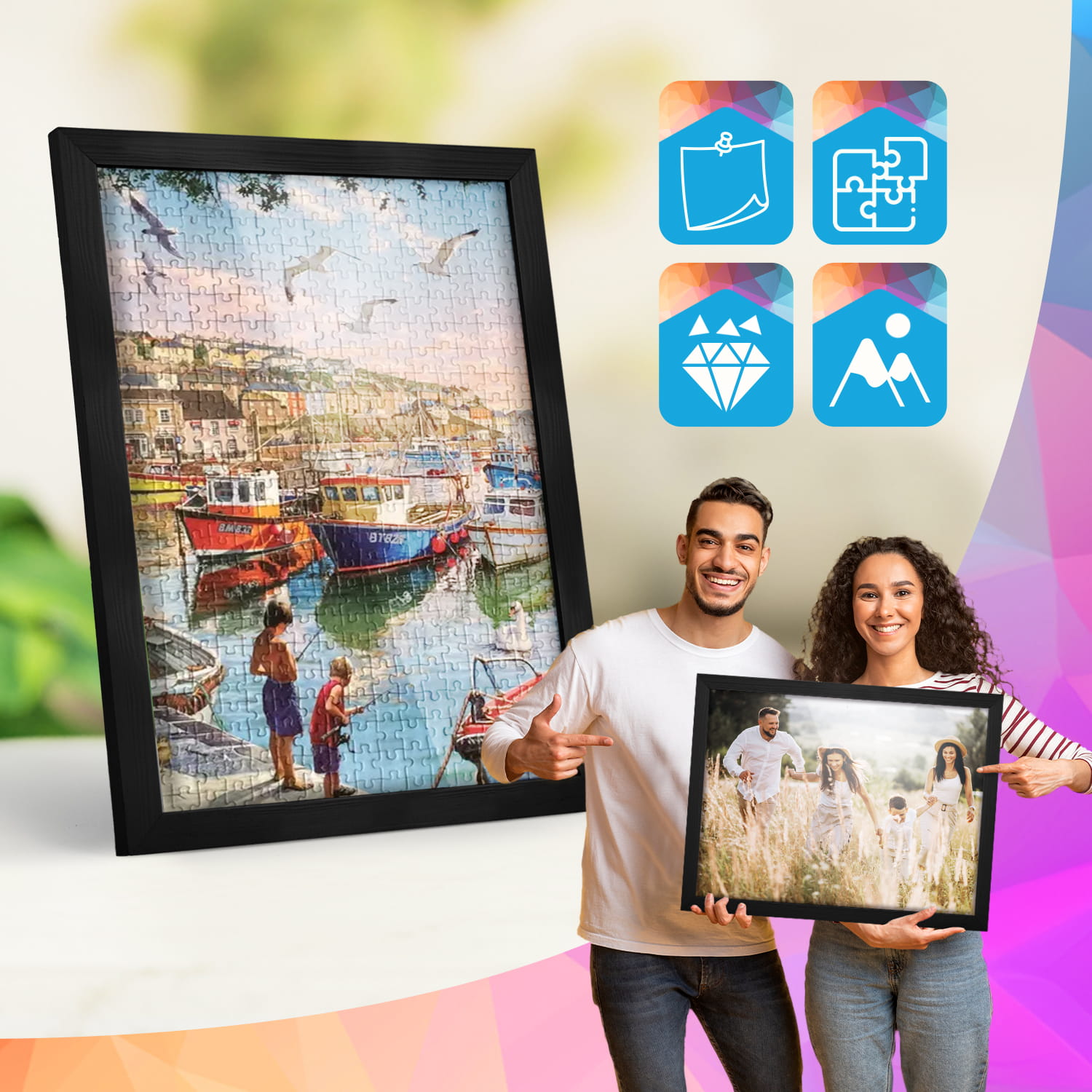 A wooden frame is an aesthetic and universal solution for framing photos, posters, graphics and decorative prints. The classic frame profile gives the frame an elegant look and clearly emphasises the presented motif without dominating the content. The frame is made of carefully processed natural wood, preserving the visible structure of the material, which gives the whole a natural and timeless character. The front of the frame is made of lightweight and damage-resistant plexiglass, which is a safer alternative to traditional glass and ensures good visibility of the framed work. The stable HDF board and solid metal hangers allow for quick installation and easy replacement of the contents without the use of tools.