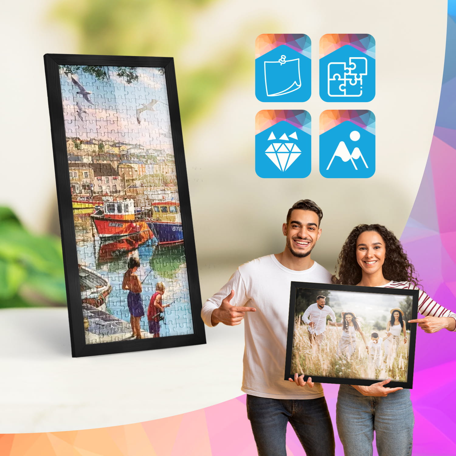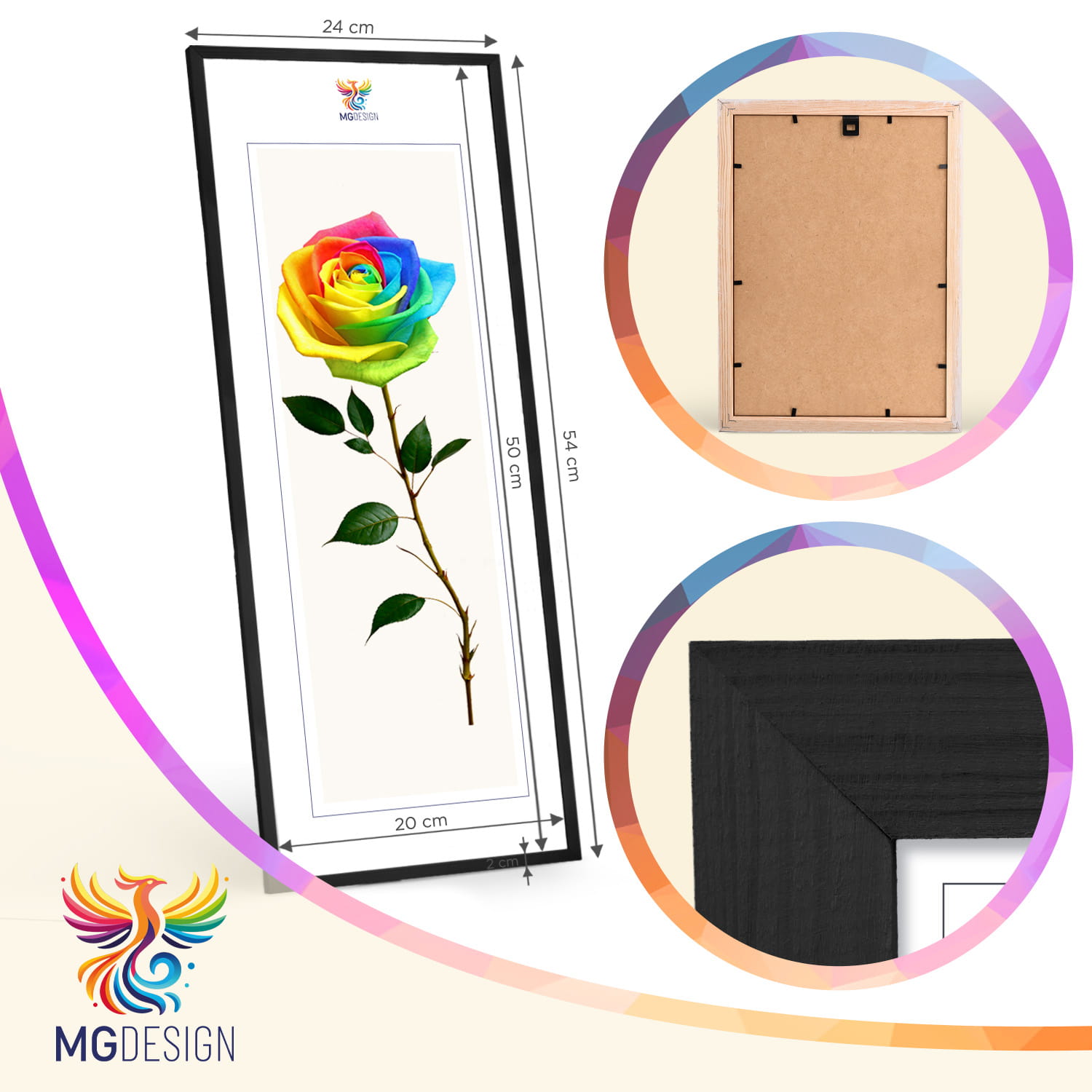 Black photo frame 8 x 20 in (20 x 50 cm), made of natural wood