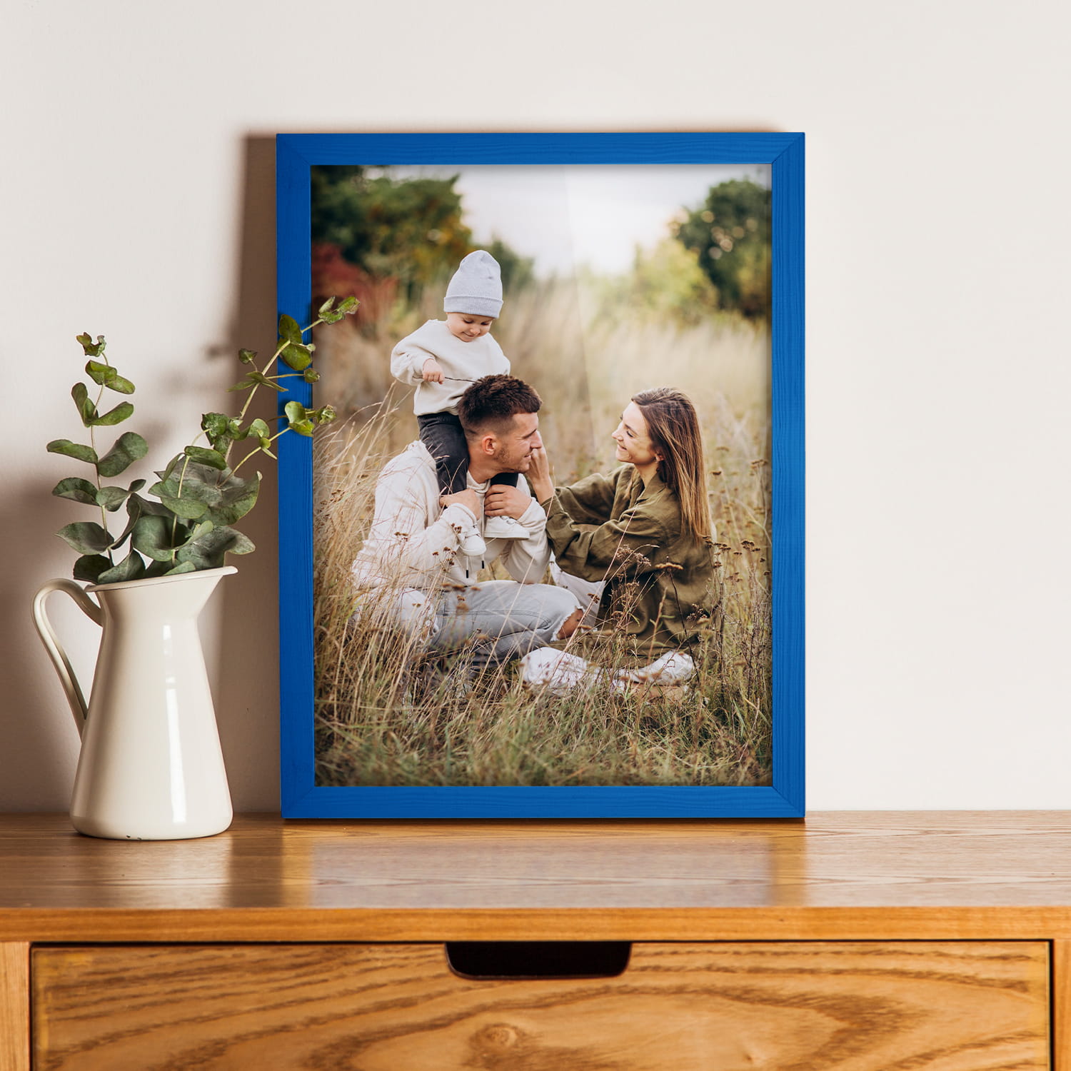 Blue photo frame 16 x 20 in (40 x 50 cm), made of natural wood