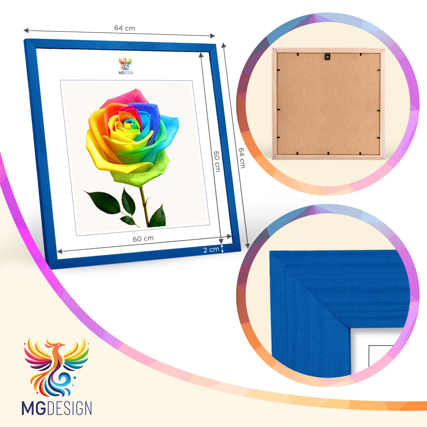Blue photo frame 24 x 24 in (60 x 60 cm), made of natural wood