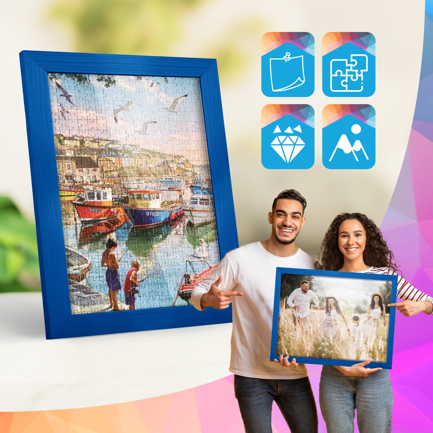 Blue photo frame 6 x 8 in (15 x 20 cm), made of natural wood