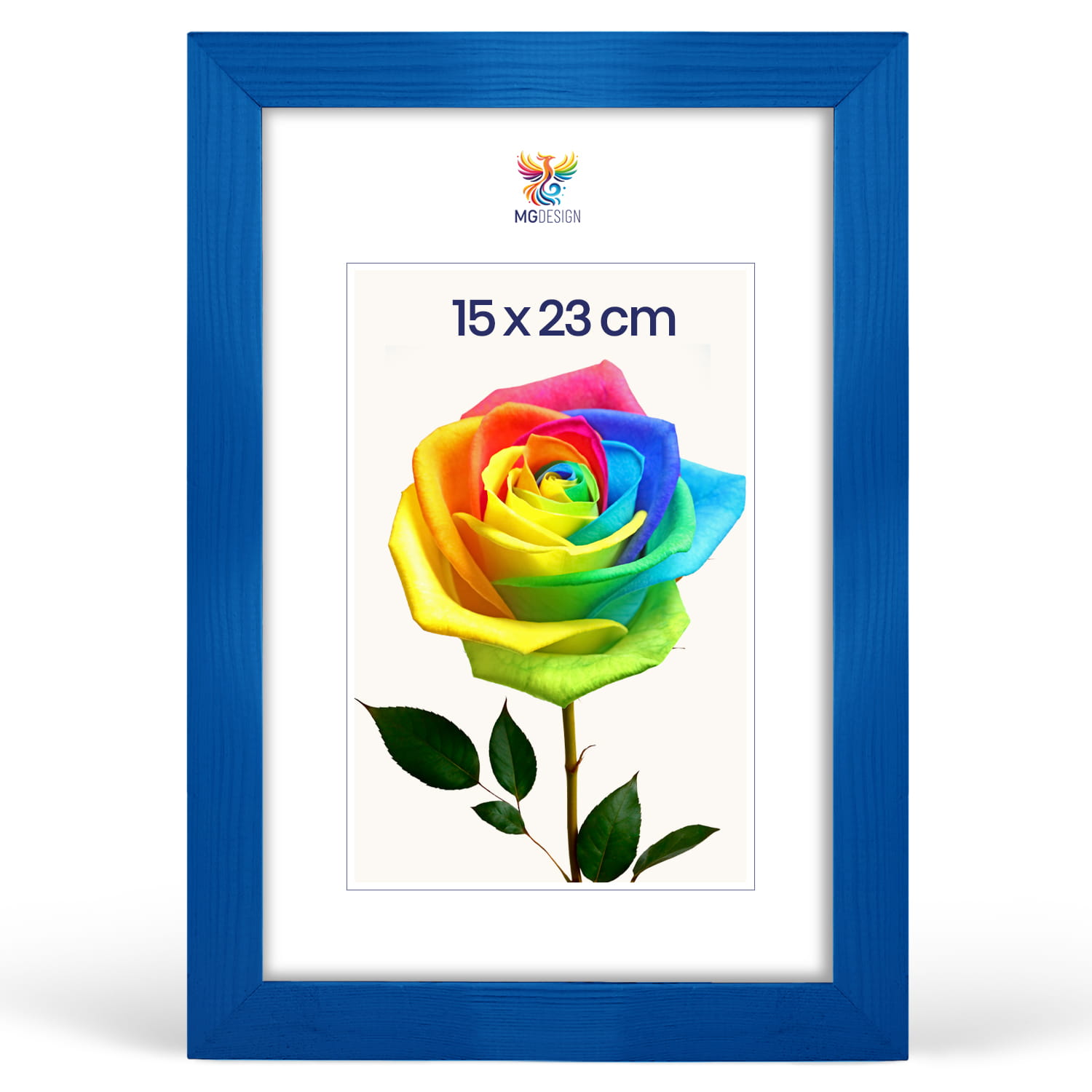 Blue photo frame 6 x 9 in (15 x 23 cm), made of natural wood