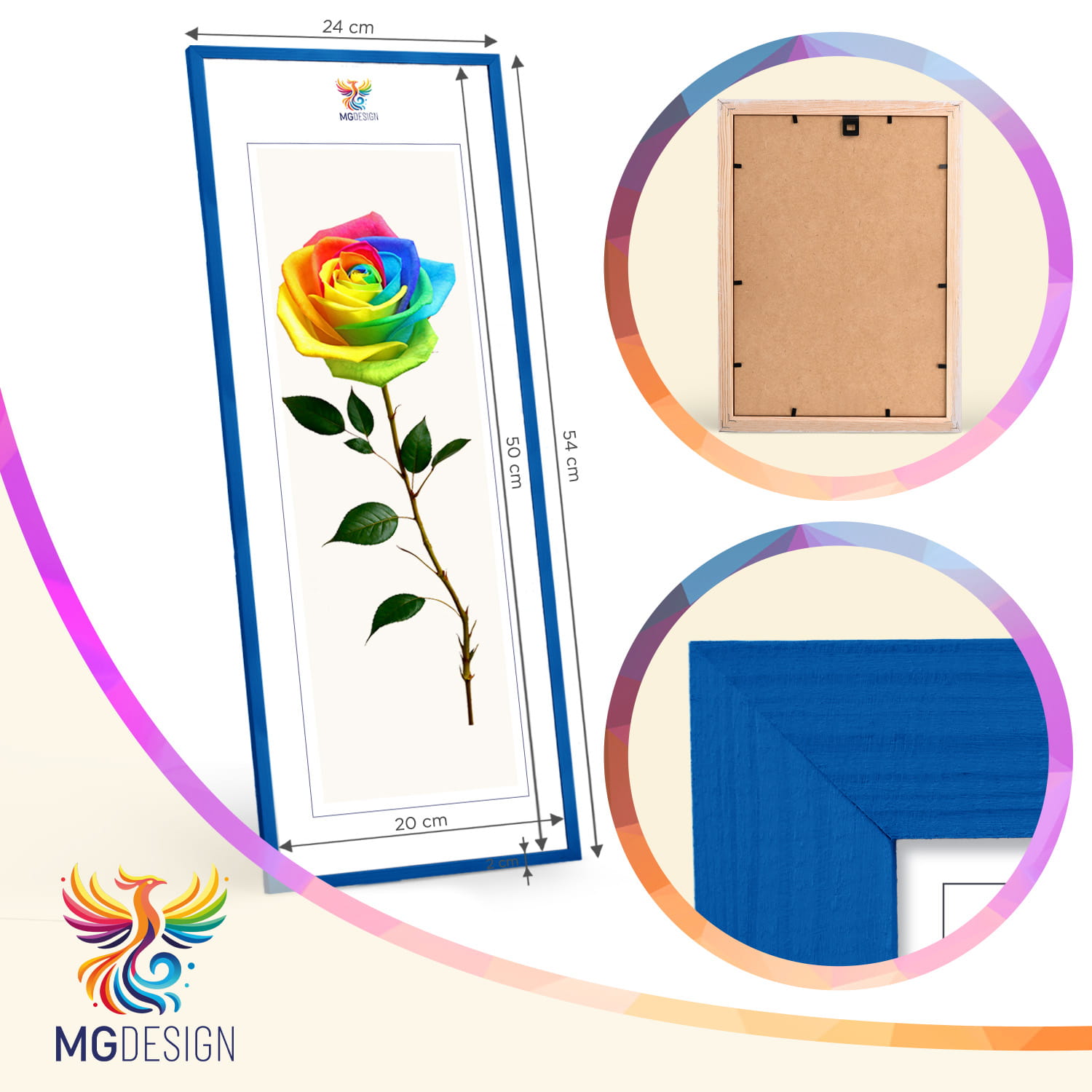 A wooden frame is an aesthetic and universal solution for framing photos, posters, graphics and decorative prints. The classic frame profile gives the frame an elegant look and clearly emphasises the presented motif without dominating the content. The frame is made of carefully processed natural wood, preserving the visible structure of the material, which gives the whole a natural and timeless character. The front of the frame is made of lightweight and damage-resistant plexiglass, which is a safer alternative to traditional glass and ensures good visibility of the framed work. The stable HDF board and solid metal hangers allow for quick installation and easy replacement of the contents without the use of tools.