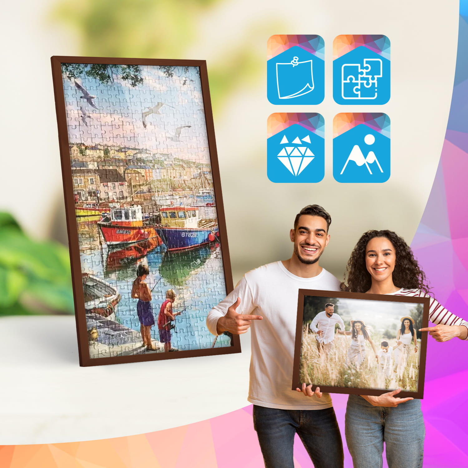A wooden frame is an aesthetic and universal solution for framing photos, posters, graphics and decorative prints. The classic frame profile gives the frame an elegant look and clearly emphasises the presented motif without dominating the content. The frame is made of carefully processed natural wood, preserving the visible structure of the material, which gives the whole a natural and timeless character. The front of the frame is made of lightweight and damage-resistant plexiglass, which is a safer alternative to traditional glass and ensures good visibility of the framed work. The stable HDF board and solid metal hangers allow for quick installation and easy replacement of the contents without the use of tools.
