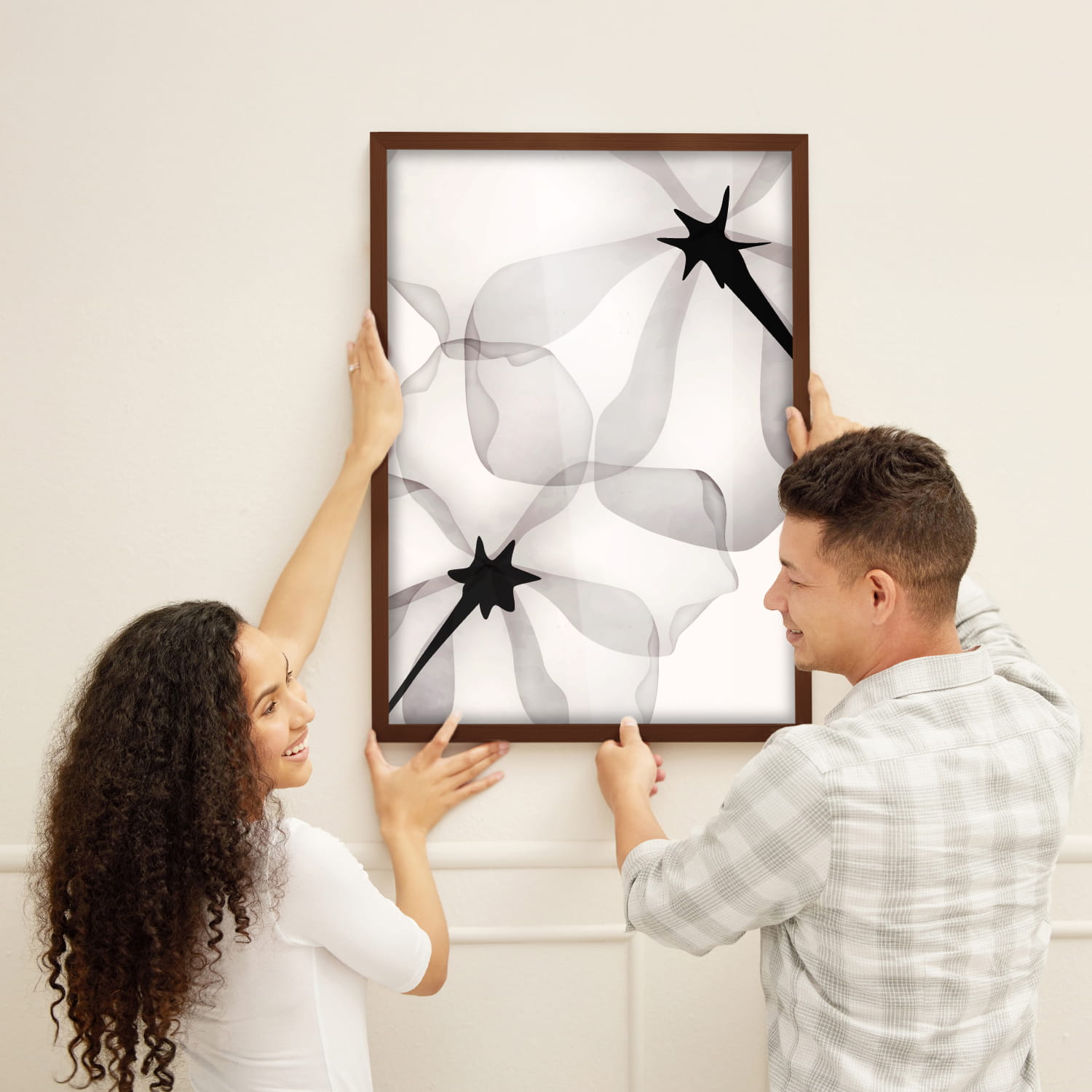 A wooden frame is an aesthetic and universal solution for framing photos, posters, graphics and decorative prints. The classic frame profile gives the frame an elegant look and clearly emphasises the presented motif without dominating the content. The frame is made of carefully processed natural wood, preserving the visible structure of the material, which gives the whole a natural and timeless character. The front of the frame is made of lightweight and damage-resistant plexiglass, which is a safer alternative to traditional glass and ensures good visibility of the framed work. The stable HDF board and solid metal hangers allow for quick installation and easy replacement of the contents without the use of tools.