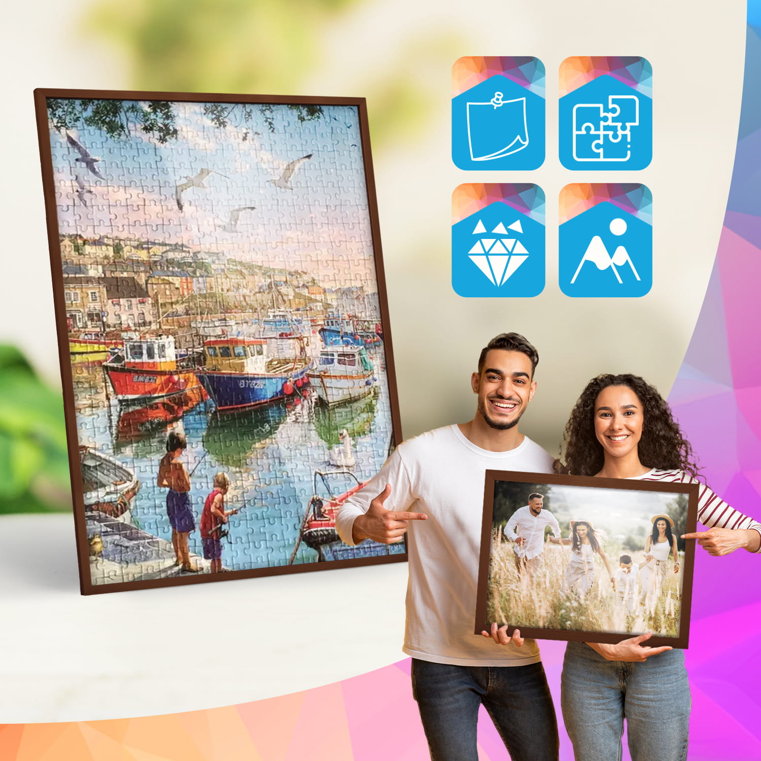 A wooden frame is an aesthetic and universal solution for framing photos, posters, graphics and decorative prints. The classic frame profile gives the frame an elegant look and clearly emphasises the presented motif without dominating the content. The frame is made of carefully processed natural wood, preserving the visible structure of the material, which gives the whole a natural and timeless character. The front of the frame is made of lightweight and damage-resistant plexiglass, which is a safer alternative to traditional glass and ensures good visibility of the framed work. The stable HDF board and solid metal hangers allow for quick installation and easy replacement of the contents without the use of tools.
