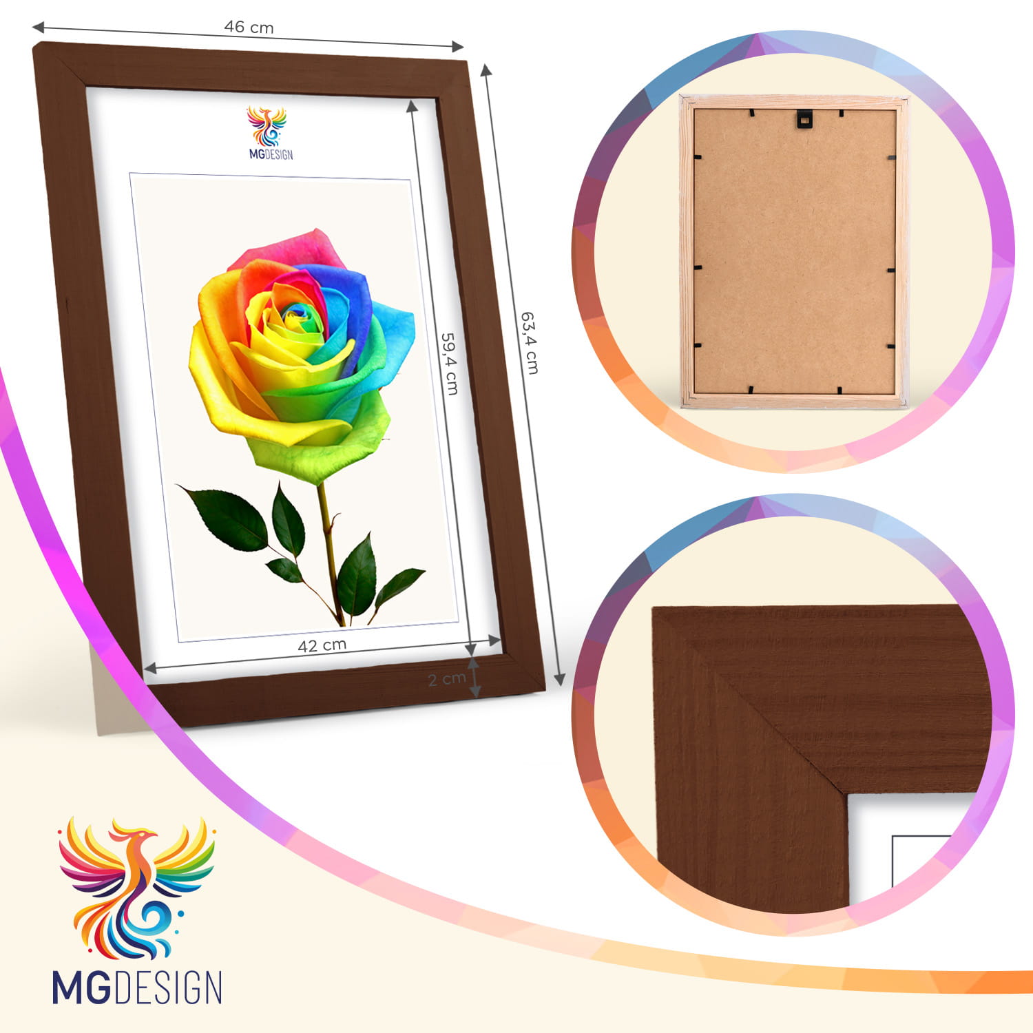 Brown photo frame A2 17 x 23 in (42 x 59,4 cm), made of natural wood