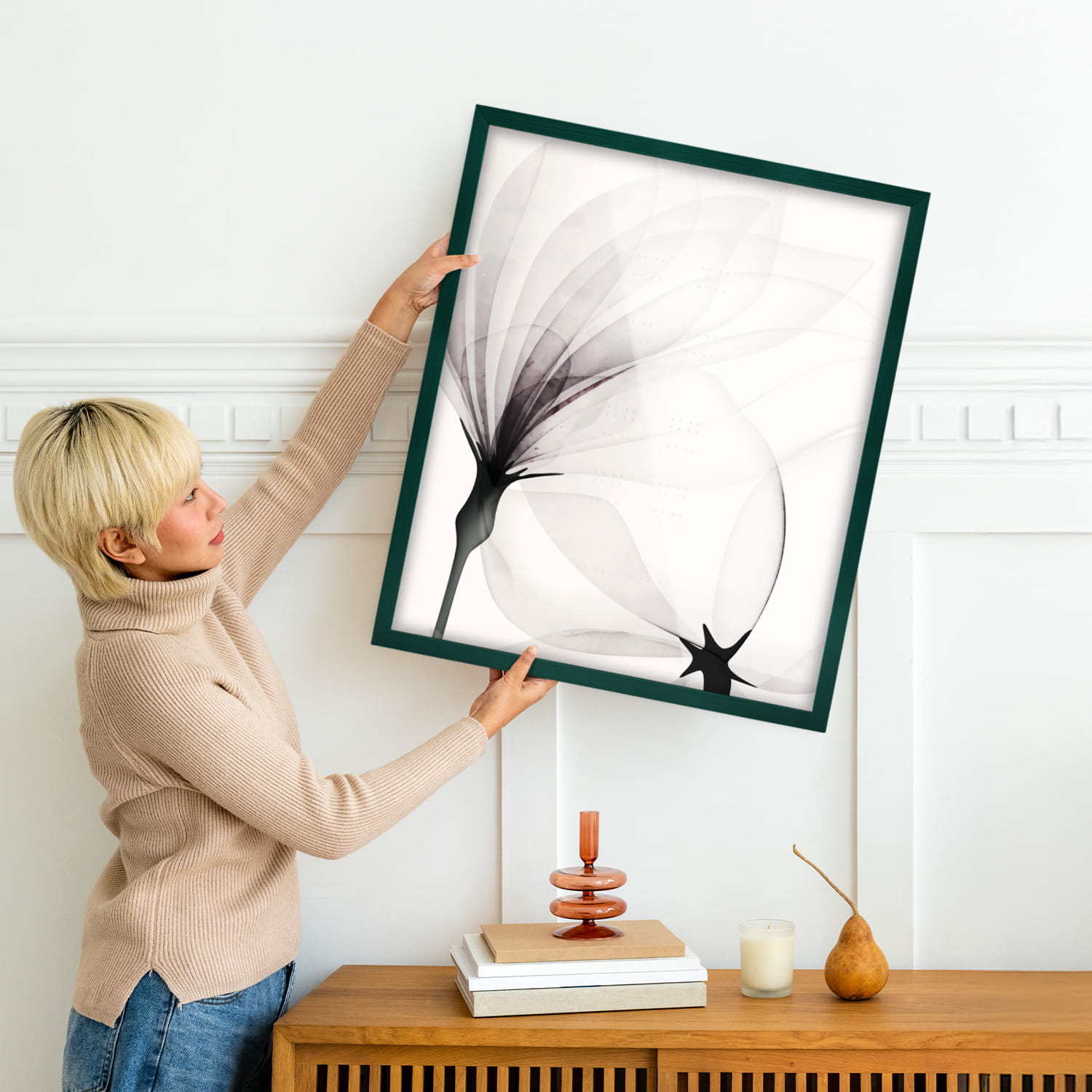 A wooden frame is an aesthetic and universal solution for framing photos, posters, graphics and decorative prints. The classic frame profile gives the frame an elegant look and clearly emphasises the presented motif without dominating the content. The frame is made of carefully processed natural wood, preserving the visible structure of the material, which gives the whole a natural and timeless character. The front of the frame is made of lightweight and damage-resistant plexiglass, which is a safer alternative to traditional glass and ensures good visibility of the framed work. The stable HDF board and solid metal hangers allow for quick installation and easy replacement of the contents without the use of tools.
