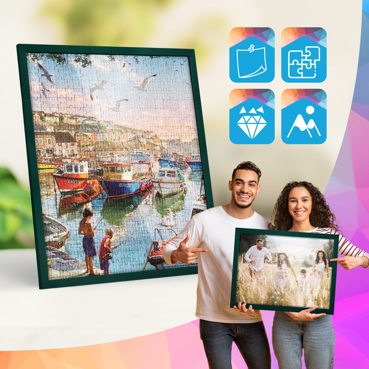 Green photo frame 20 x 24 in (50 x 60 cm), made of natural wood