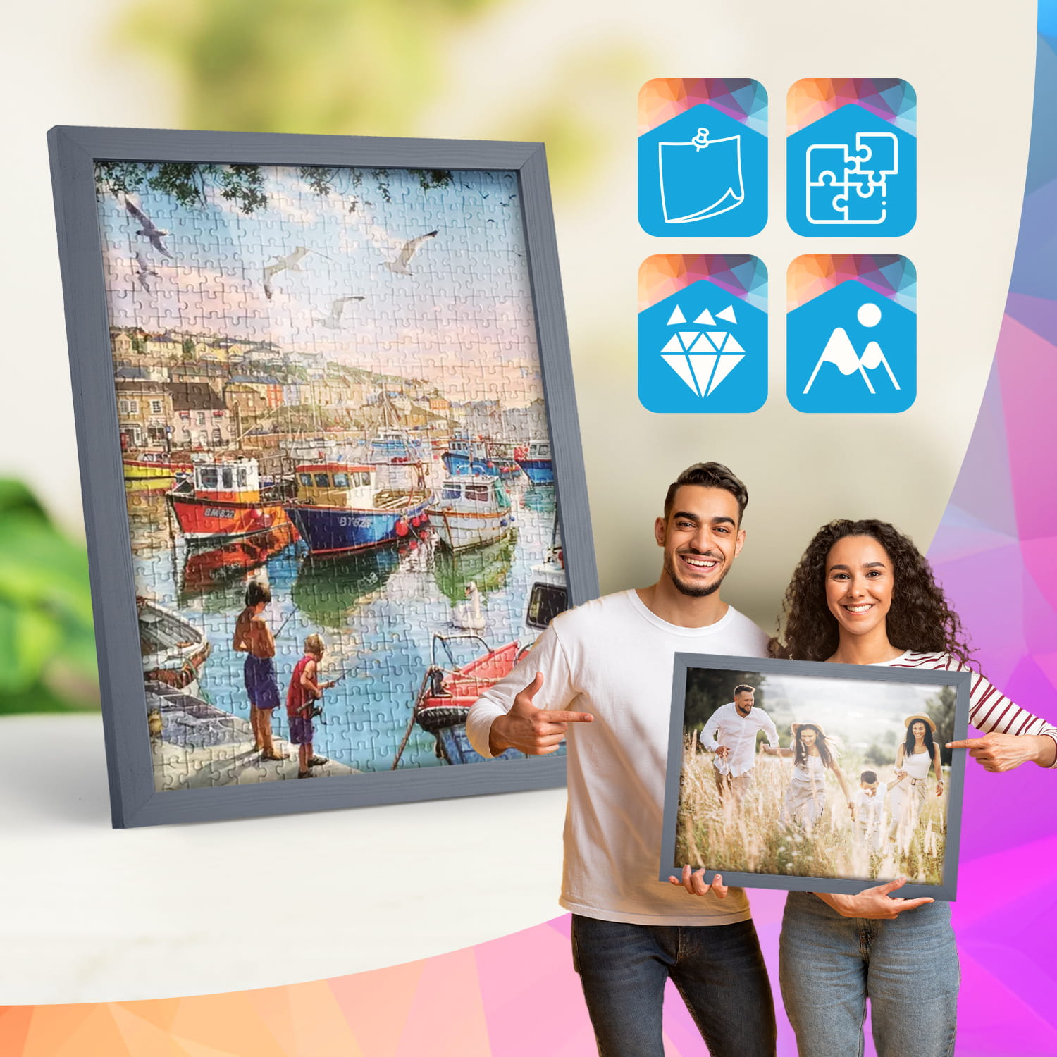 A wooden frame is an aesthetic and universal solution for framing photos, posters, graphics and decorative prints. The classic frame profile gives the frame an elegant look and clearly emphasises the presented motif without dominating the content. The frame is made of carefully processed natural wood, preserving the visible structure of the material, which gives the whole a natural and timeless character. The front of the frame is made of lightweight and damage-resistant plexiglass, which is a safer alternative to traditional glass and ensures good visibility of the framed work. The stable HDF board and solid metal hangers allow for quick installation and easy replacement of the contents without the use of tools.