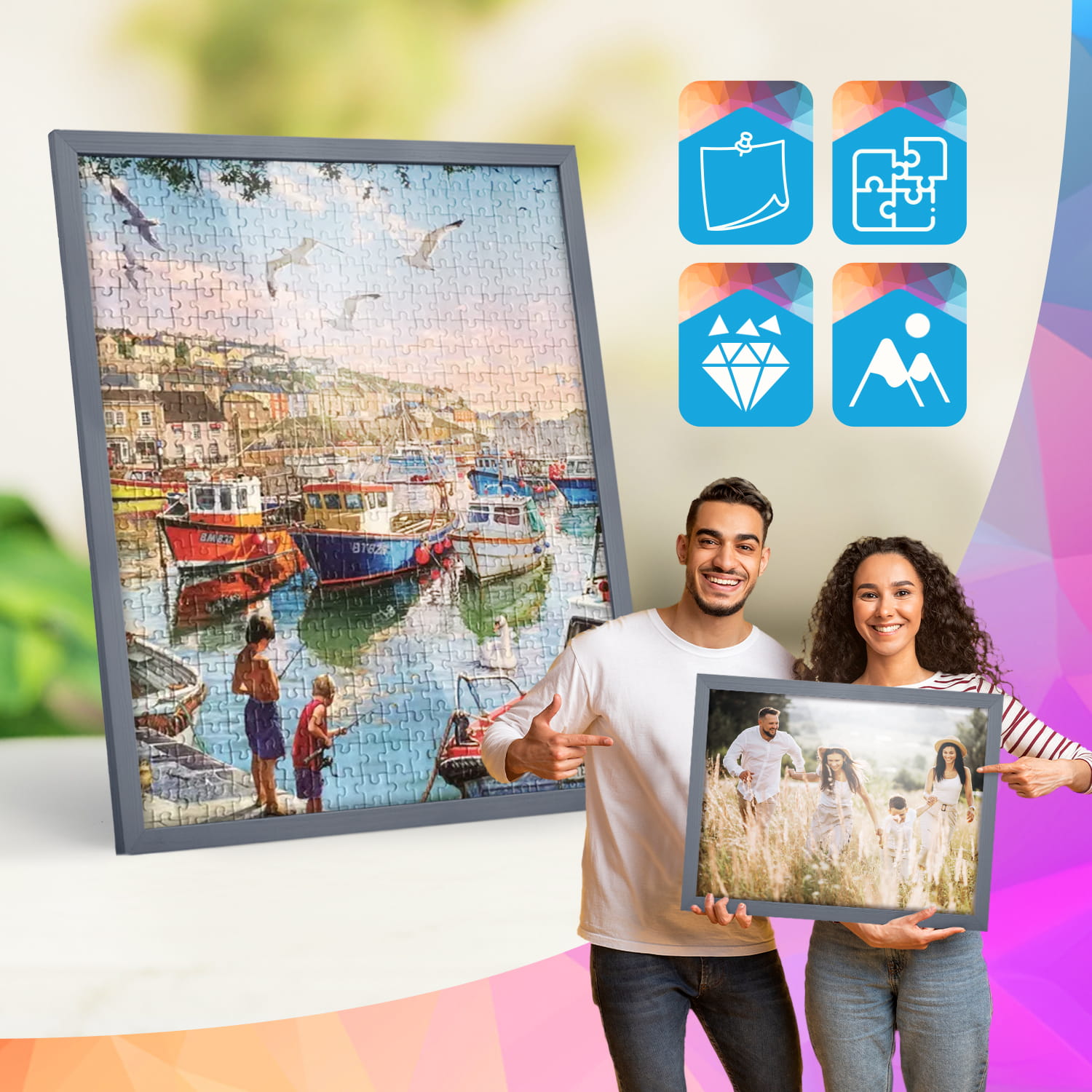 Grey photo frame 20 x 24 in (50 x 60 cm), made of natural wood