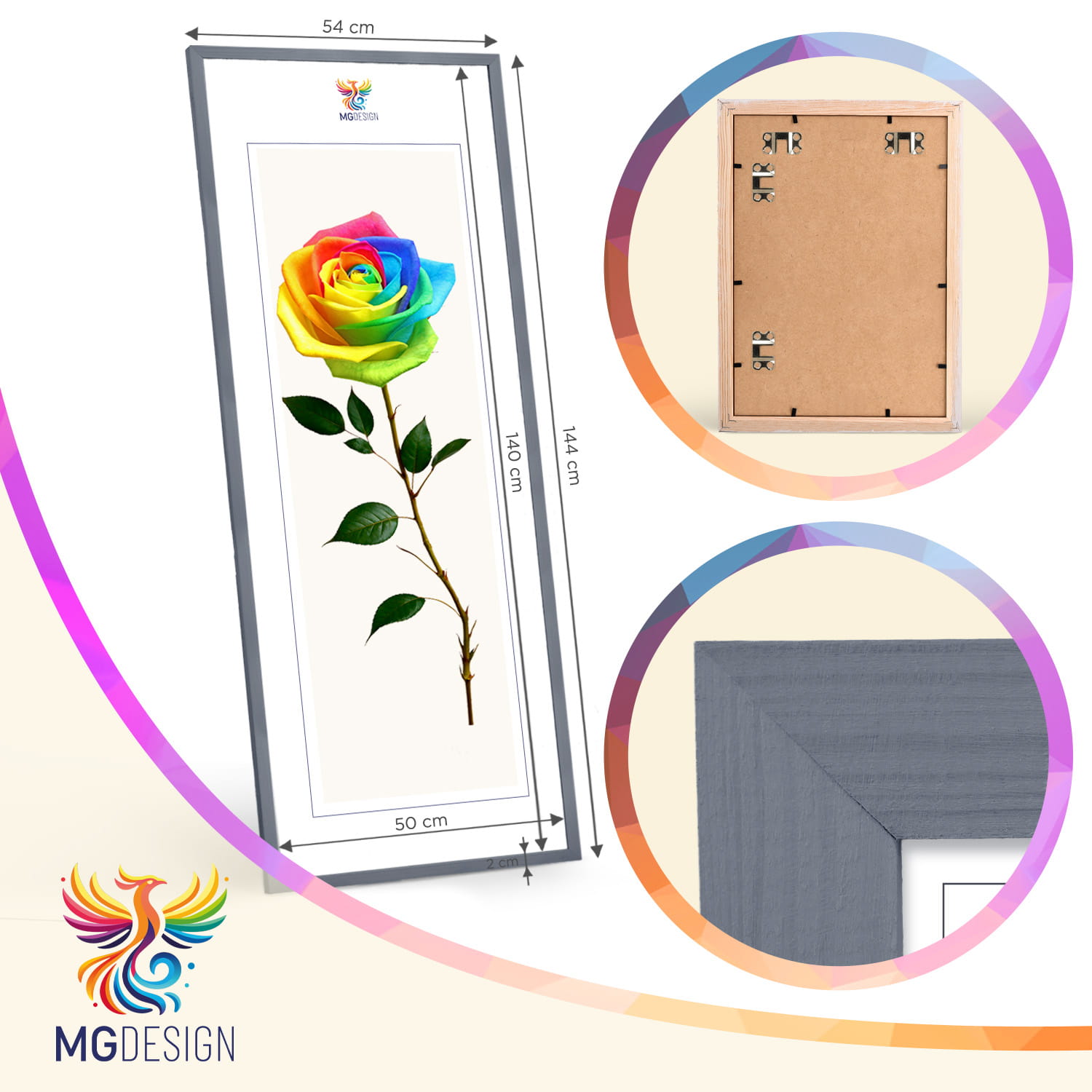A wooden frame is an aesthetic and universal solution for framing photos, posters, graphics and decorative prints. The classic frame profile gives the frame an elegant look and clearly emphasises the presented motif without dominating the content. The frame is made of carefully processed natural wood, preserving the visible structure of the material, which gives the whole a natural and timeless character. The front of the frame is made of lightweight and damage-resistant plexiglass, which is a safer alternative to traditional glass and ensures good visibility of the framed work. The stable HDF board and solid metal hangers allow for quick installation and easy replacement of the contents without the use of tools.
