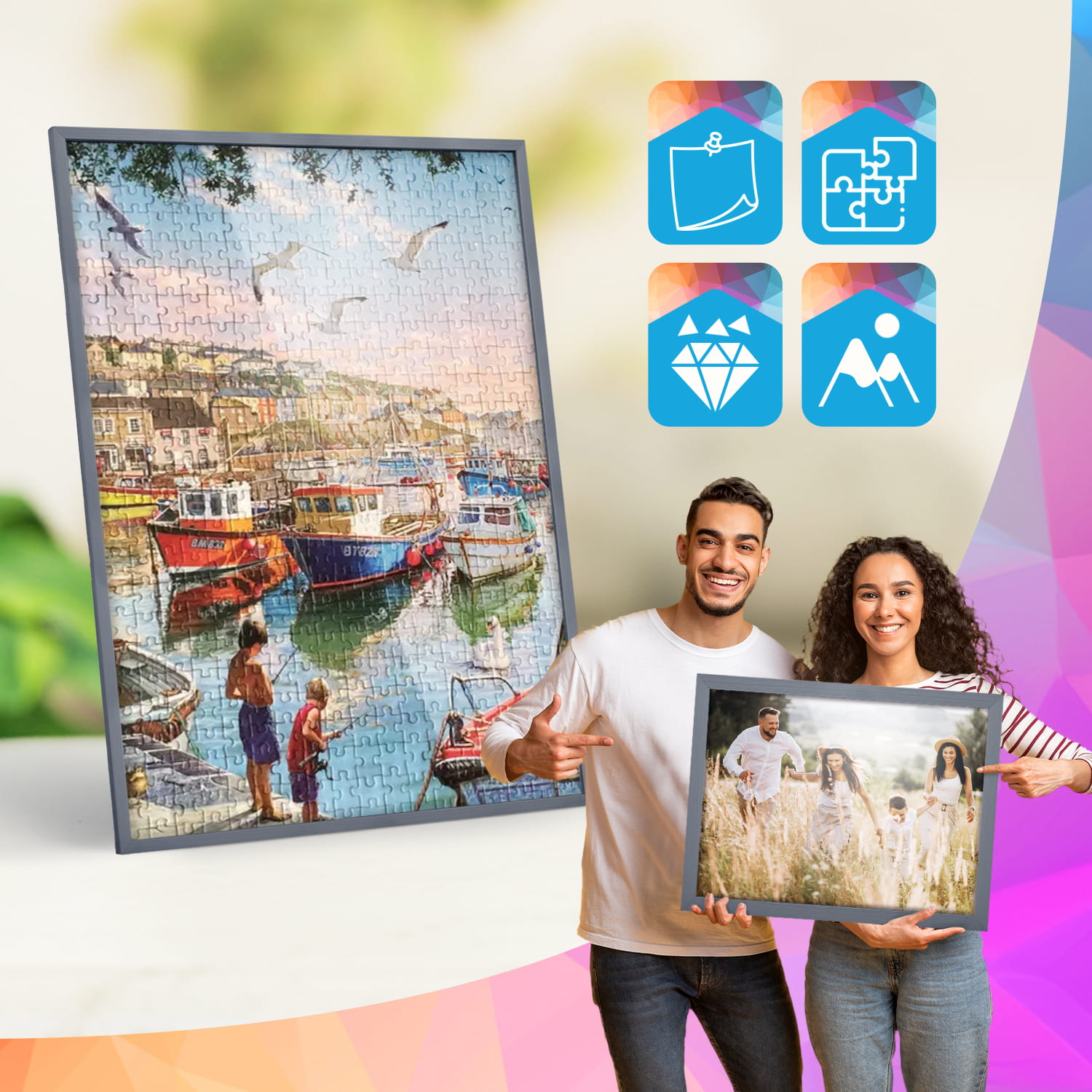 A wooden frame is an aesthetic and universal solution for framing photos, posters, graphics and decorative prints. The classic frame profile gives the frame an elegant look and clearly emphasises the presented motif without dominating the content. The frame is made of carefully processed natural wood, preserving the visible structure of the material, which gives the whole a natural and timeless character. The front of the frame is made of lightweight and damage-resistant plexiglass, which is a safer alternative to traditional glass and ensures good visibility of the framed work. The stable HDF board and solid metal hangers allow for quick installation and easy replacement of the contents without the use of tools.