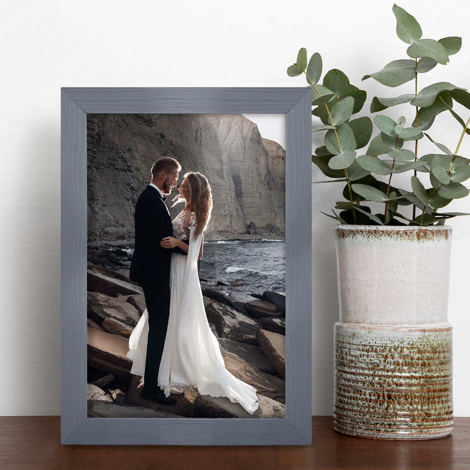 Grey photo frame 7 x 9 in (18 x 24 cm), made of natural wood