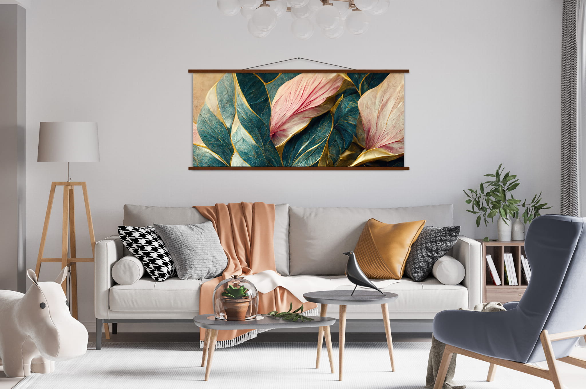 - Magnetic wooden strip system – securely holds prints without traditional frames
