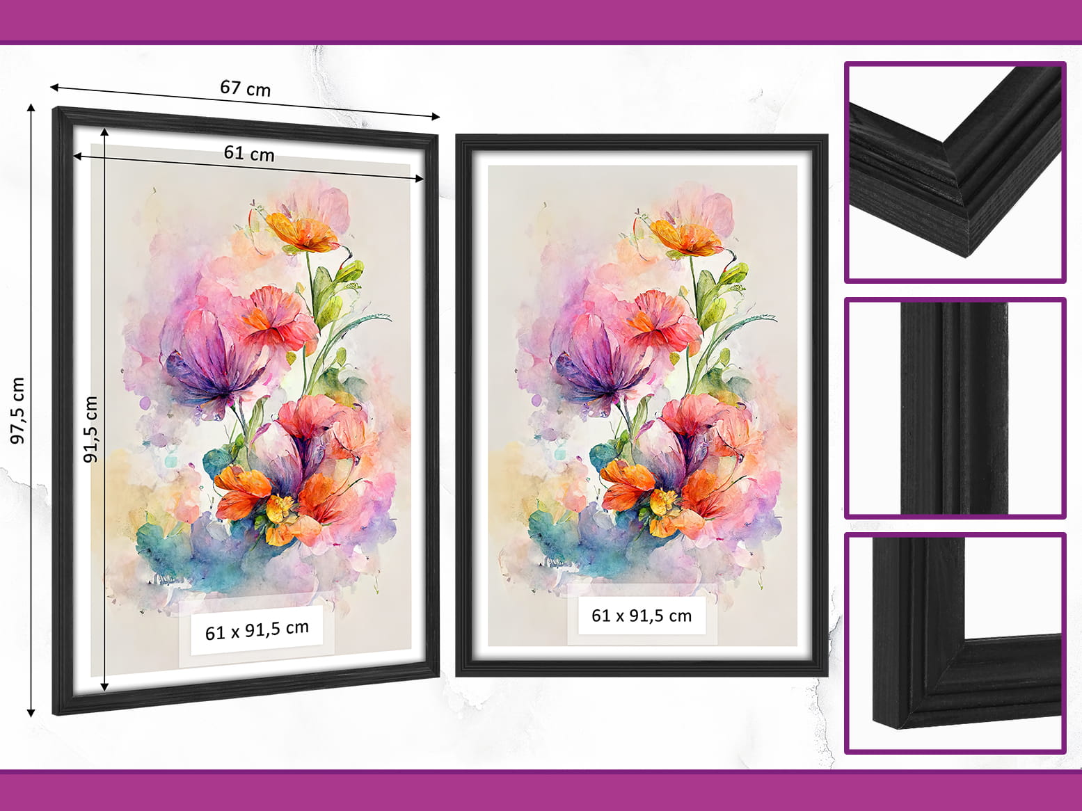 Milled Wooden Picture Frame 24 x 36 in (61 x 91,5 cm) Black