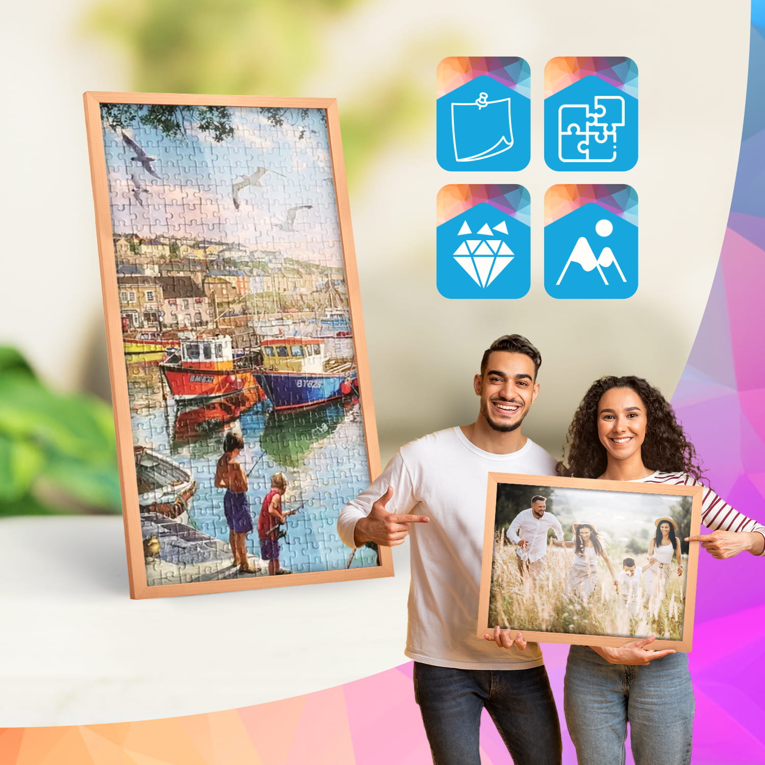 A wooden frame is an aesthetic and universal solution for framing photos, posters, graphics and decorative prints. The classic frame profile gives the frame an elegant look and clearly emphasises the presented motif without dominating the content. The frame is made of carefully processed natural wood, preserving the visible structure of the material, which gives the whole a natural and timeless character. The front of the frame is made of lightweight and damage-resistant plexiglass, which is a safer alternative to traditional glass and ensures good visibility of the framed work. The stable HDF board and solid metal hangers allow for quick installation and easy replacement of the contents without the use of tools.