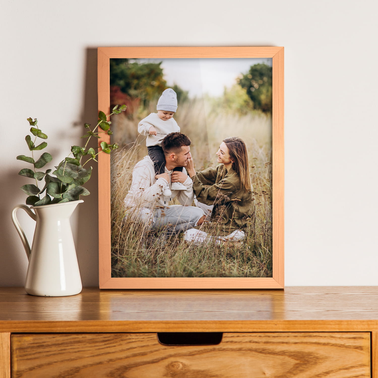 A wooden frame is an aesthetic and universal solution for framing photos, posters, graphics and decorative prints. The classic frame profile gives the frame an elegant look and clearly emphasises the presented motif without dominating the content. The frame is made of carefully processed natural wood, preserving the visible structure of the material, which gives the whole a natural and timeless character. The front of the frame is made of lightweight and damage-resistant plexiglass, which is a safer alternative to traditional glass and ensures good visibility of the framed work. The stable HDF board and solid metal hangers allow for quick installation and easy replacement of the contents without the use of tools.