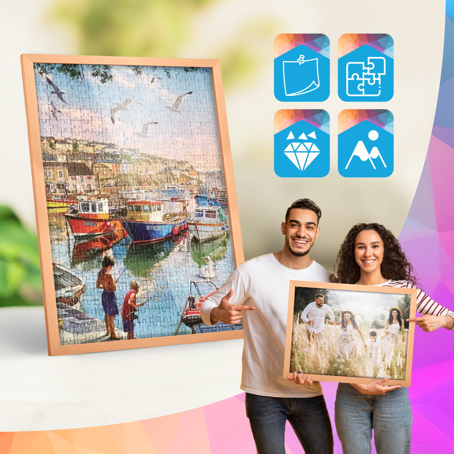 A wooden frame is an aesthetic and universal solution for framing photos, posters, graphics and decorative prints. The classic frame profile gives the frame an elegant look and clearly emphasises the presented motif without dominating the content. The frame is made of carefully processed natural wood, preserving the visible structure of the material, which gives the whole a natural and timeless character. The front of the frame is made of lightweight and damage-resistant plexiglass, which is a safer alternative to traditional glass and ensures good visibility of the framed work. The stable HDF board and solid metal hangers allow for quick installation and easy replacement of the contents without the use of tools.