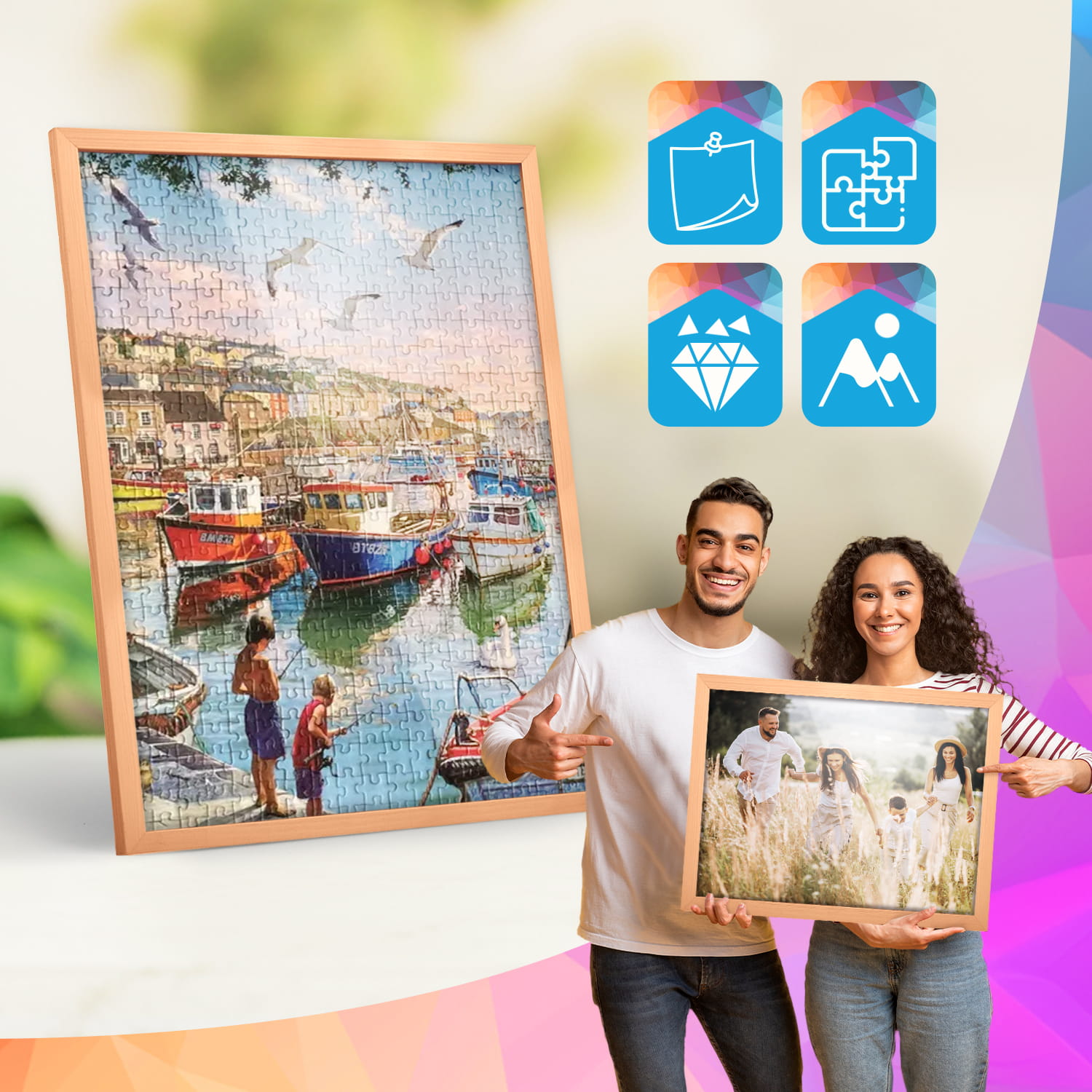 A wooden frame is an aesthetic and universal solution for framing photos, posters, graphics and decorative prints. The classic frame profile gives the frame an elegant look and clearly emphasises the presented motif without dominating the content. The frame is made of carefully processed natural wood, preserving the visible structure of the material, which gives the whole a natural and timeless character. The front of the frame is made of lightweight and damage-resistant plexiglass, which is a safer alternative to traditional glass and ensures good visibility of the framed work. The stable HDF board and solid metal hangers allow for quick installation and easy replacement of the contents without the use of tools.