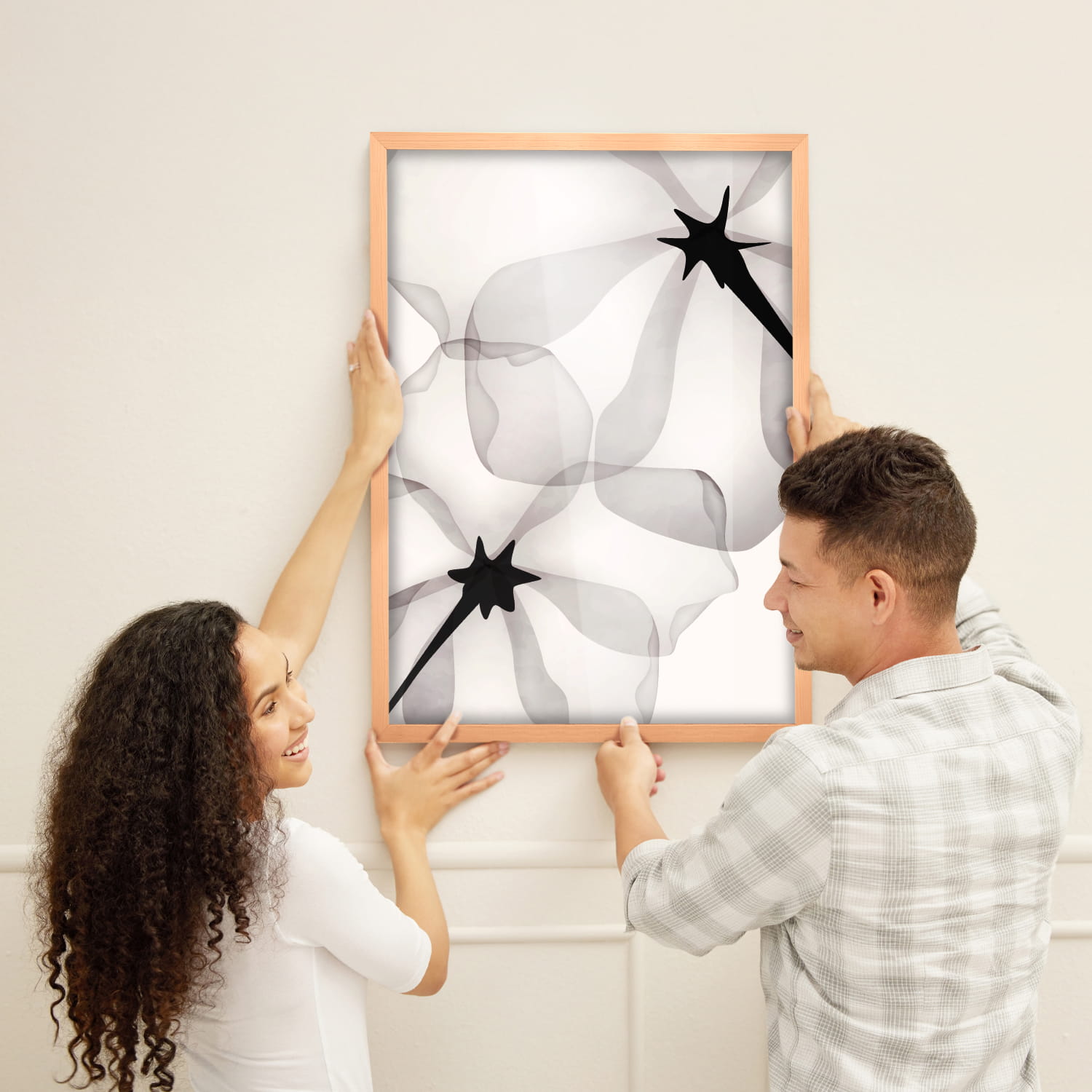 A wooden frame is an aesthetic and universal solution for framing photos, posters, graphics and decorative prints. The classic frame profile gives the frame an elegant look and clearly emphasises the presented motif without dominating the content. The frame is made of carefully processed natural wood, preserving the visible structure of the material, which gives the whole a natural and timeless character. The front of the frame is made of lightweight and damage-resistant plexiglass, which is a safer alternative to traditional glass and ensures good visibility of the framed work. The stable HDF board and solid metal hangers allow for quick installation and easy replacement of the contents without the use of tools.