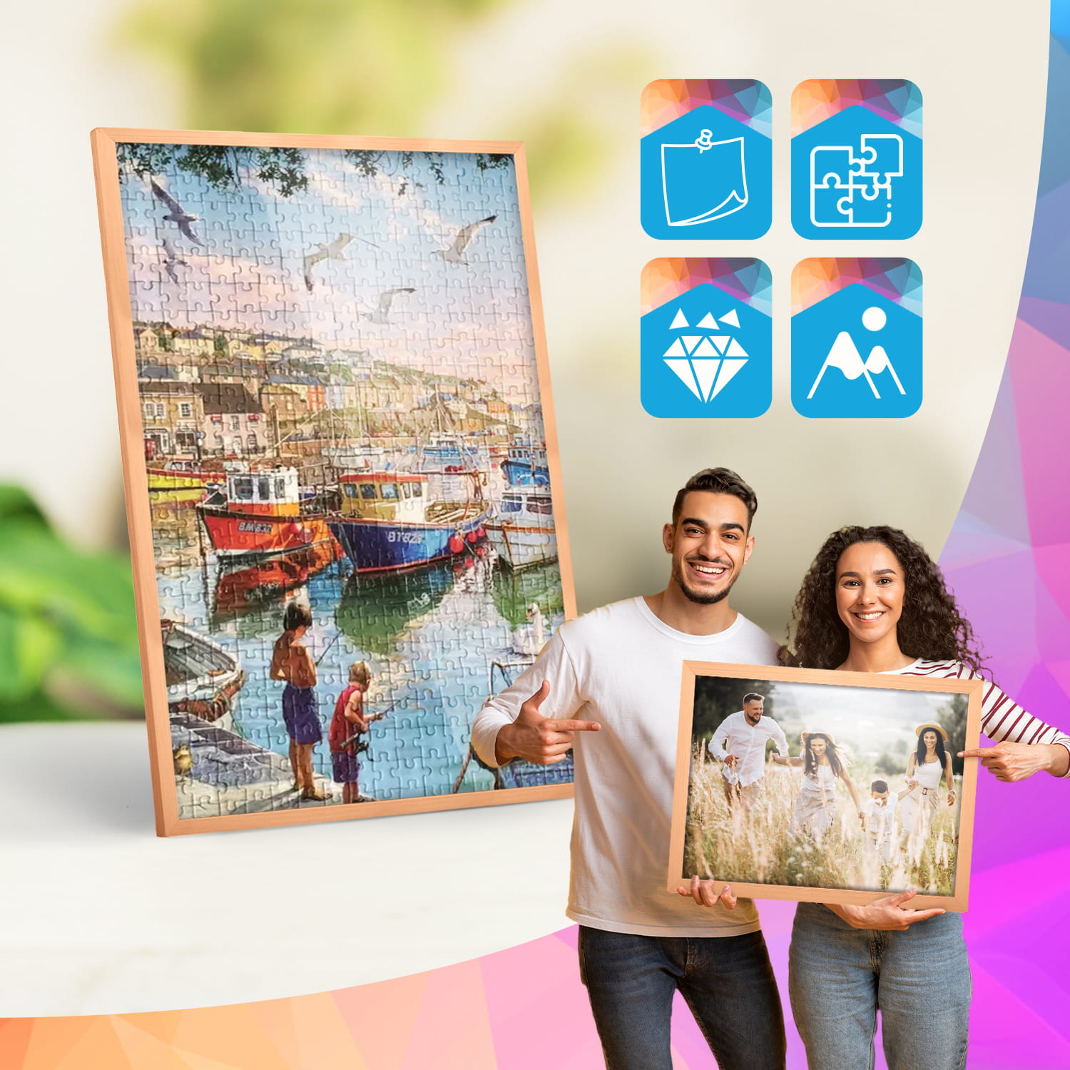 A wooden frame is an aesthetic and universal solution for framing photos, posters, graphics and decorative prints. The classic frame profile gives the frame an elegant look and clearly emphasises the presented motif without dominating the content. The frame is made of carefully processed natural wood, preserving the visible structure of the material, which gives the whole a natural and timeless character. The front of the frame is made of lightweight and damage-resistant plexiglass, which is a safer alternative to traditional glass and ensures good visibility of the framed work. The stable HDF board and solid metal hangers allow for quick installation and easy replacement of the contents without the use of tools.