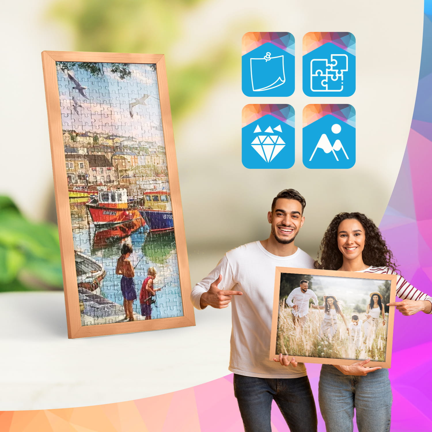 A wooden frame is an aesthetic and universal solution for framing photos, posters, graphics and decorative prints. The classic frame profile gives the frame an elegant look and clearly emphasises the presented motif without dominating the content. The frame is made of carefully processed natural wood, preserving the visible structure of the material, which gives the whole a natural and timeless character. The front of the frame is made of lightweight and damage-resistant plexiglass, which is a safer alternative to traditional glass and ensures good visibility of the framed work. The stable HDF board and solid metal hangers allow for quick installation and easy replacement of the contents without the use of tools.