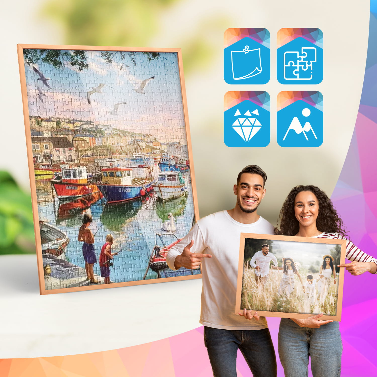 A wooden frame is an aesthetic and universal solution for framing photos, posters, graphics and decorative prints. The classic frame profile gives the frame an elegant look and clearly emphasises the presented motif without dominating the content. The frame is made of carefully processed natural wood, preserving the visible structure of the material, which gives the whole a natural and timeless character. The front of the frame is made of lightweight and damage-resistant plexiglass, which is a safer alternative to traditional glass and ensures good visibility of the framed work. The stable HDF board and solid metal hangers allow for quick installation and easy replacement of the contents without the use of tools.