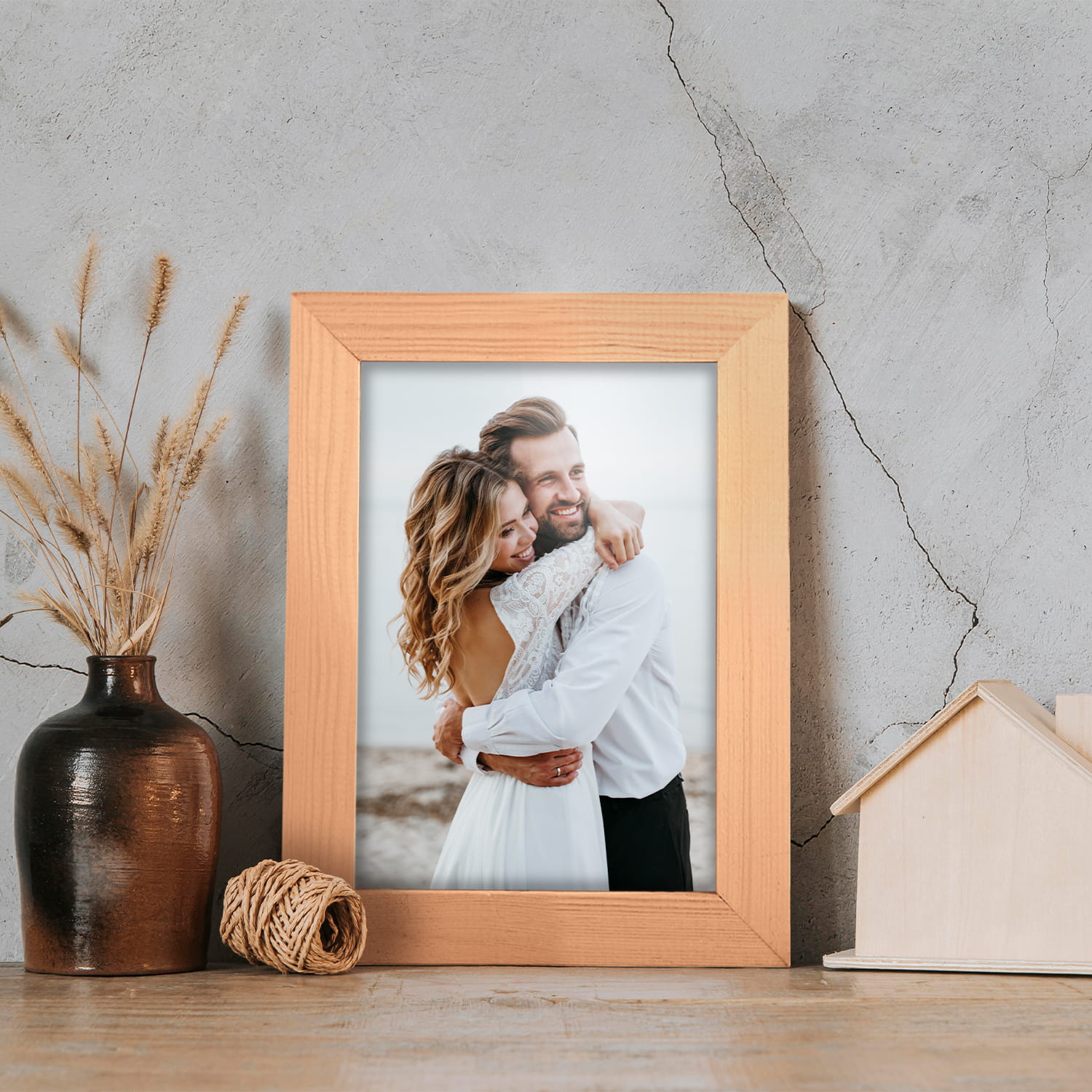 A wooden frame is an aesthetic and universal solution for framing photos, posters, graphics and decorative prints. The classic frame profile gives the frame an elegant look and clearly emphasises the presented motif without dominating the content. The frame is made of carefully processed natural wood, preserving the visible structure of the material, which gives the whole a natural and timeless character. The front of the frame is made of lightweight and damage-resistant plexiglass, which is a safer alternative to traditional glass and ensures good visibility of the framed work. The stable HDF board and solid metal hangers allow for quick installation and easy replacement of the contents without the use of tools.