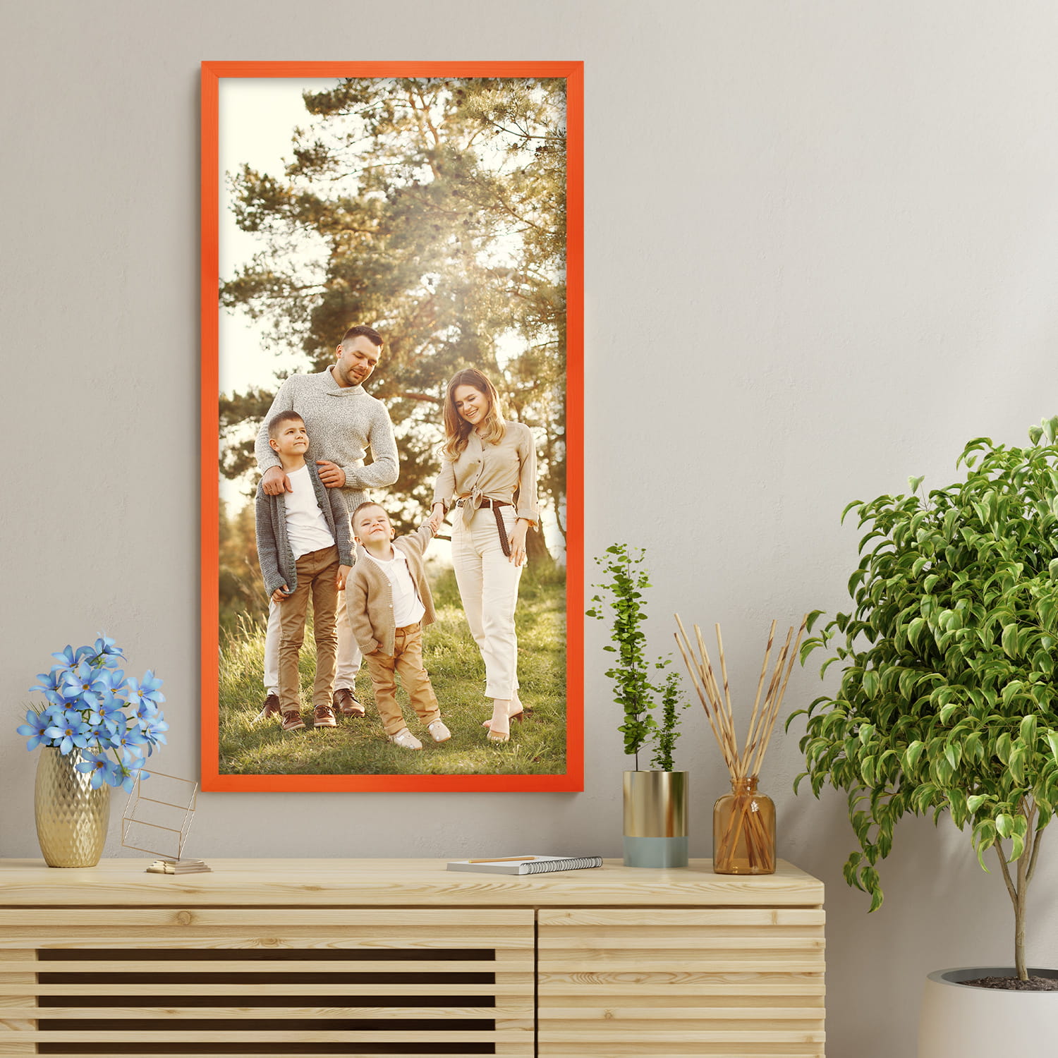 Orange photo frame 12 x 24 in (30 x 60 cm), made of natural wood