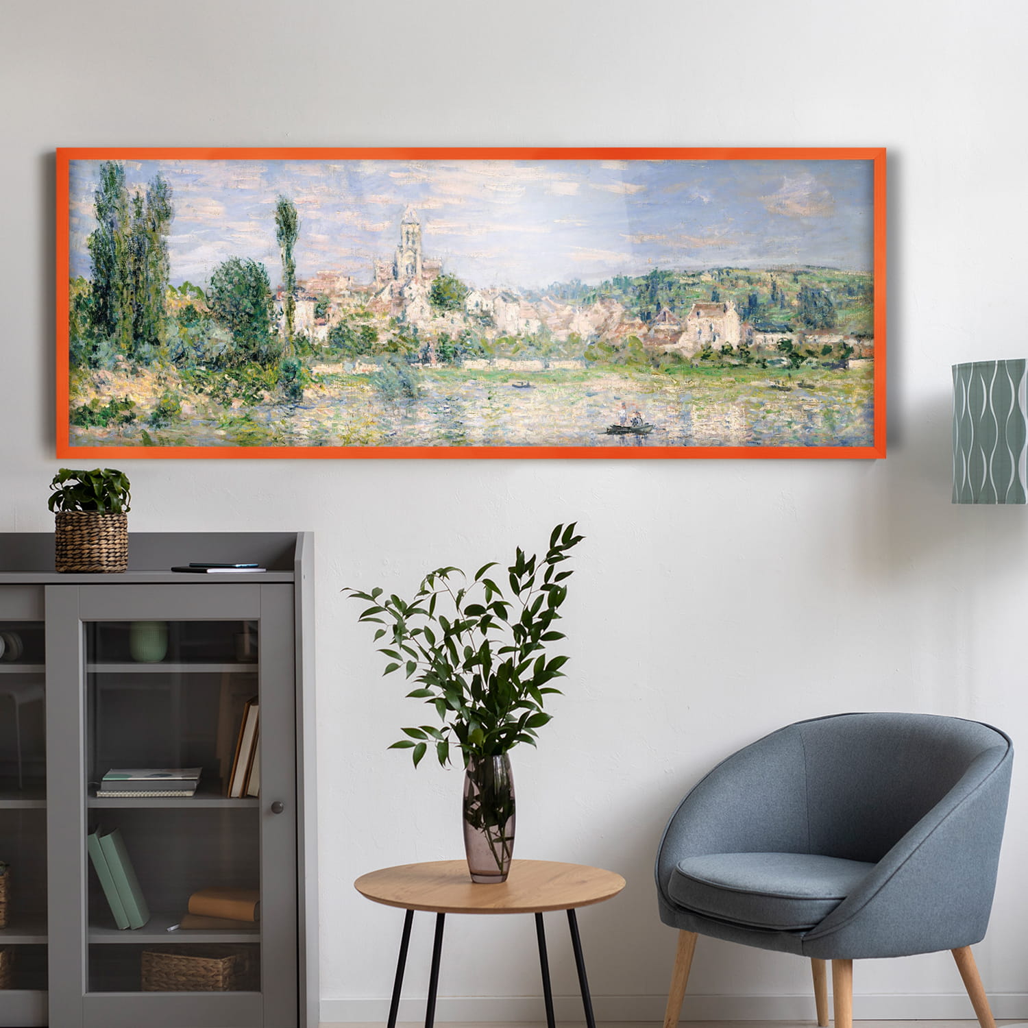 Orange photo frame 14 x 40 in (35 x 100 cm), made of natural wood