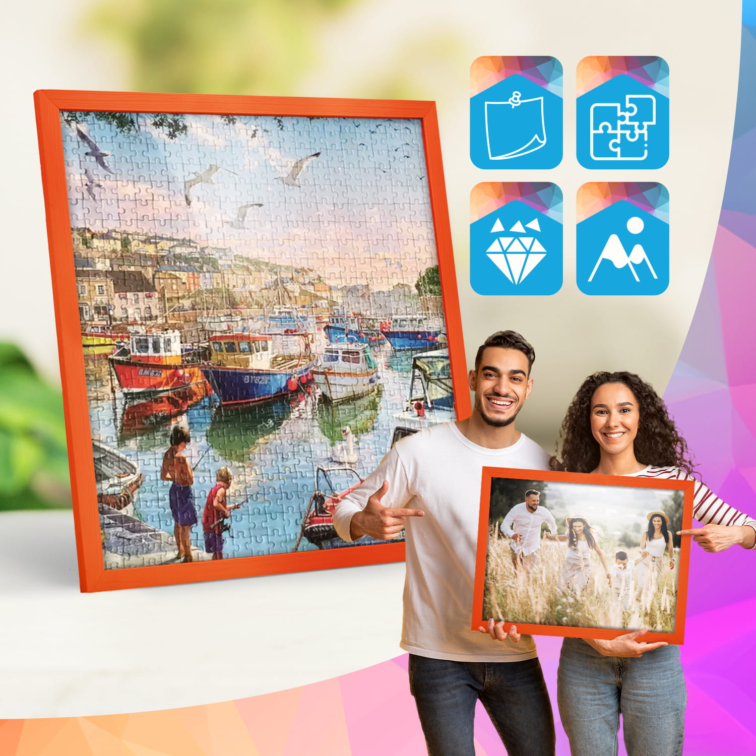 Orange photo frame 16 x 16 in (40 x 40 cm), made of natural wood