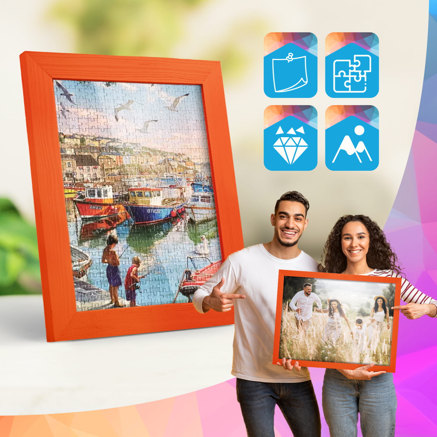 Orange photo frame 5 x 7 in (13 x 18 cm), made of natural wood