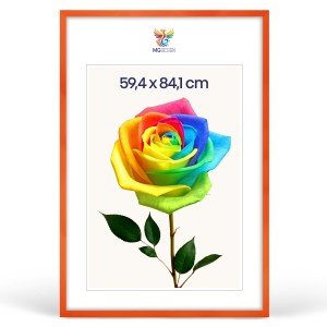 Orange photo frame A1 23 x 33 in (59,4 x 84,1 cm), made of natural wood