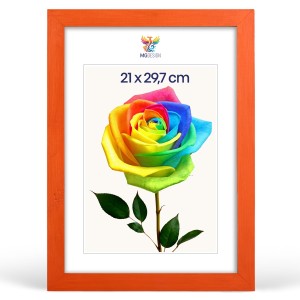 Orange photo frame A4 8 x 12 in (21 x 29,7 cm), made of natural wood