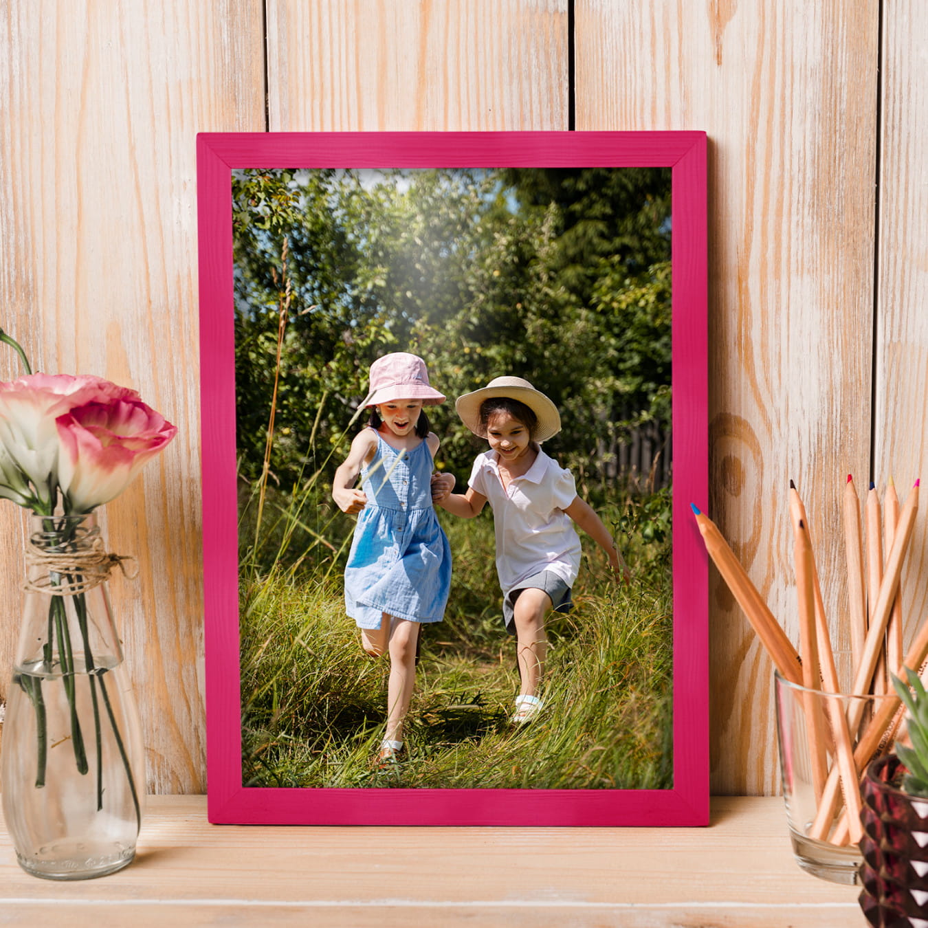 Pink photo frame 10 x 14 in (25 x 35 cm), made of natural wood