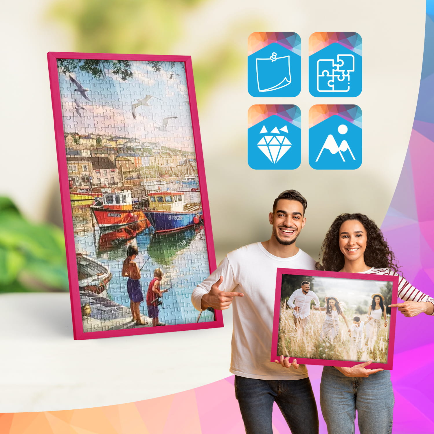 Pink photo frame 14 x 32 in (35 x 80 cm), made of natural wood