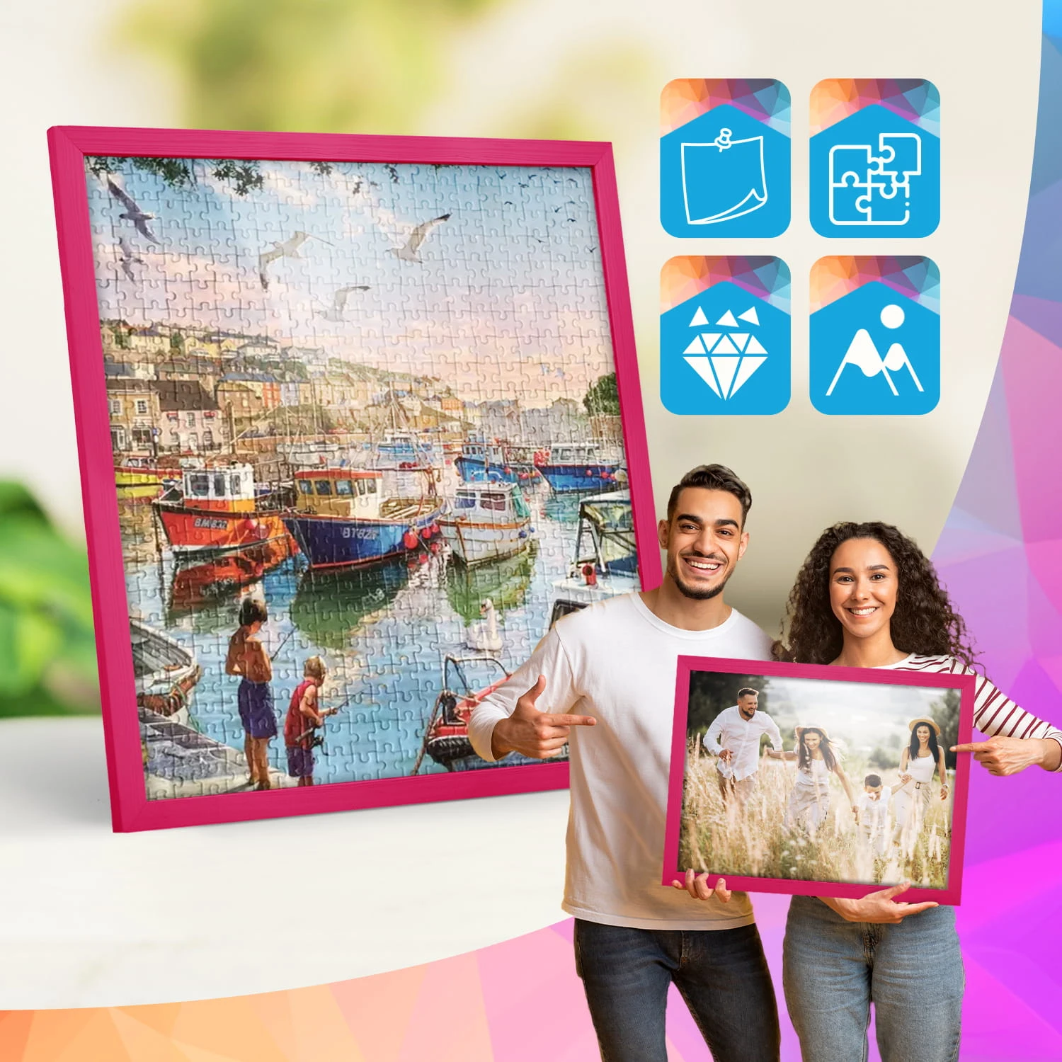 Pink photo frame 16 x 16 in (40 x 40 cm), made of natural wood