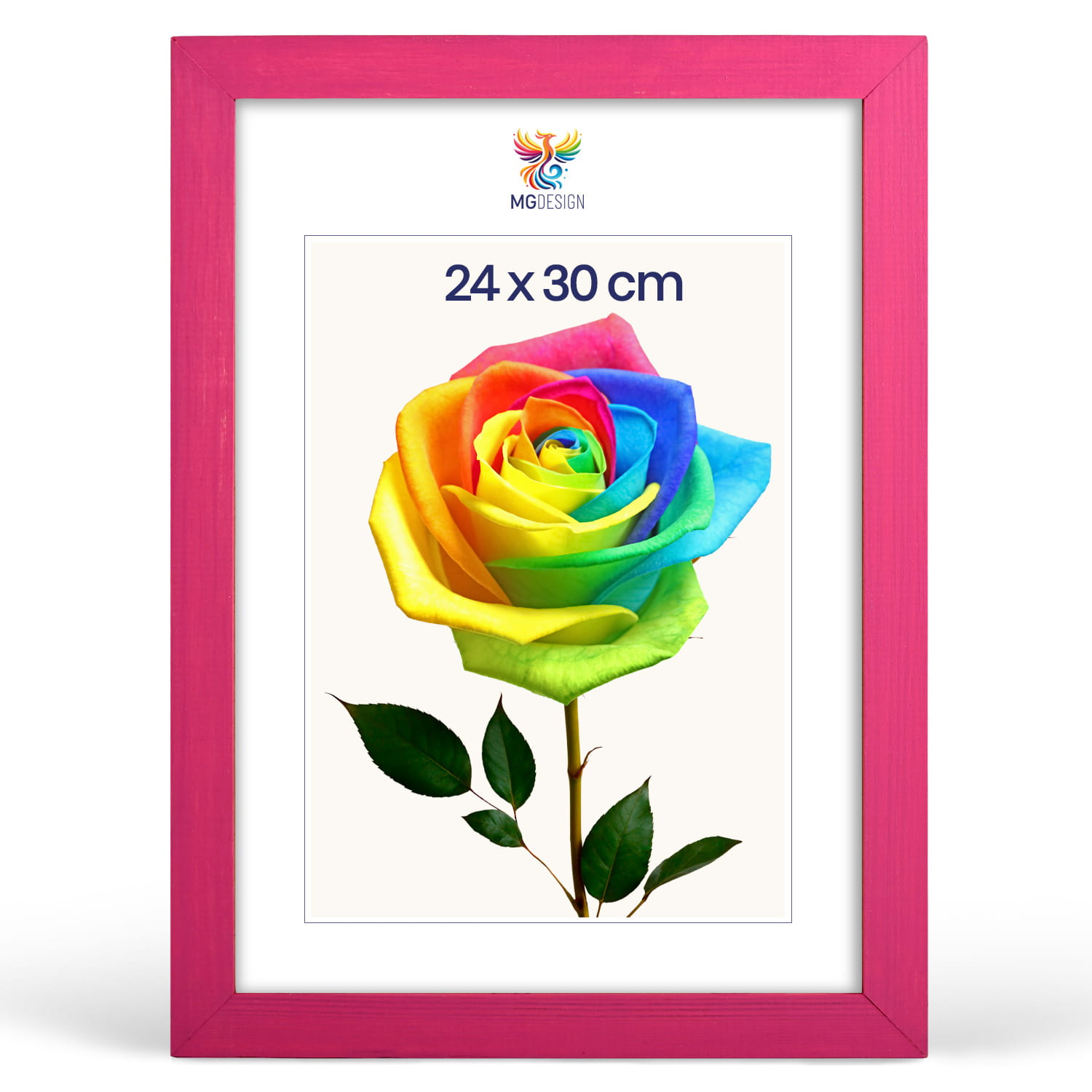 Pink photo frame 9 x 12 in (24 x 30 cm), made of natural wood