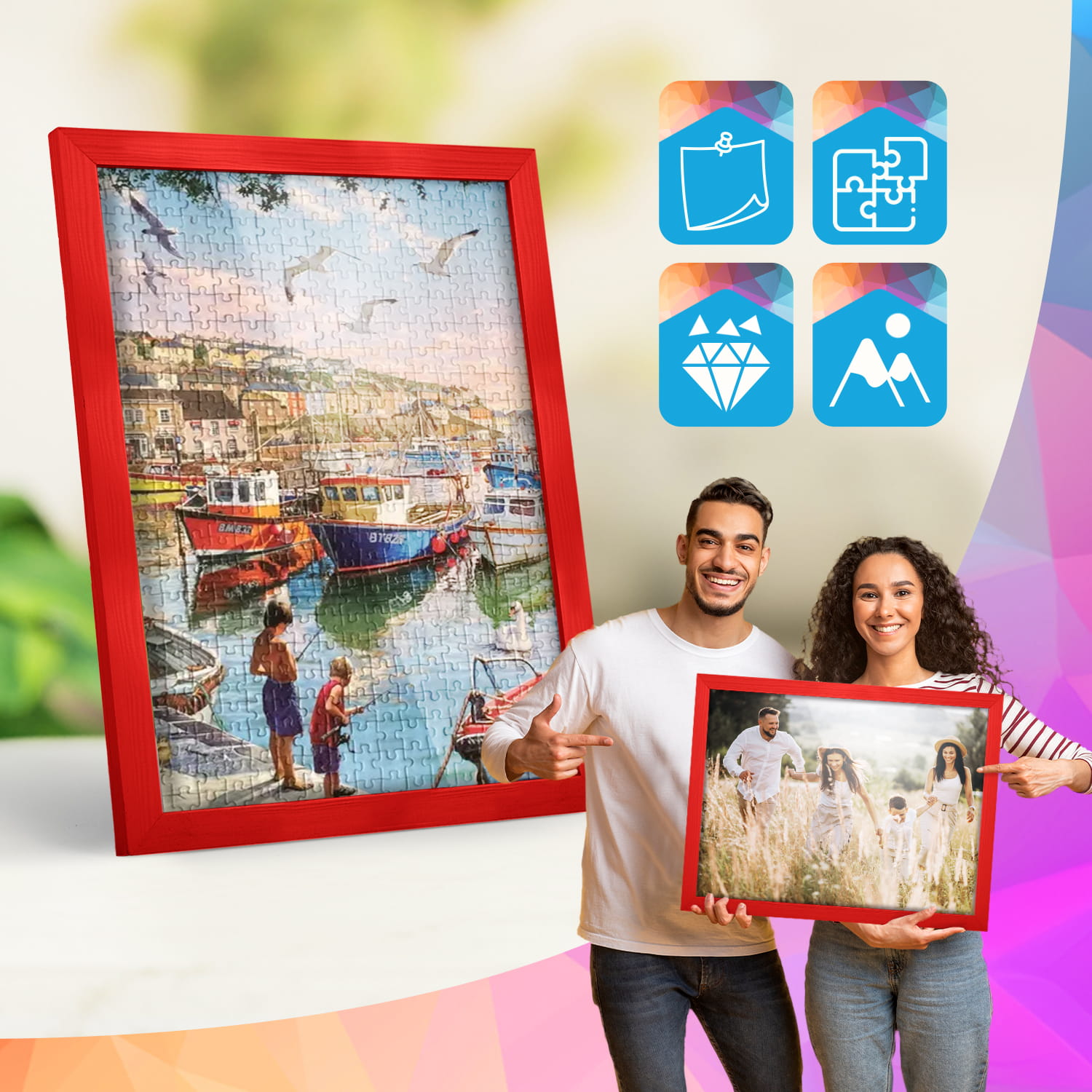 Red photo frame 10 x 14 in (25 x 35 cm), made of natural wood
