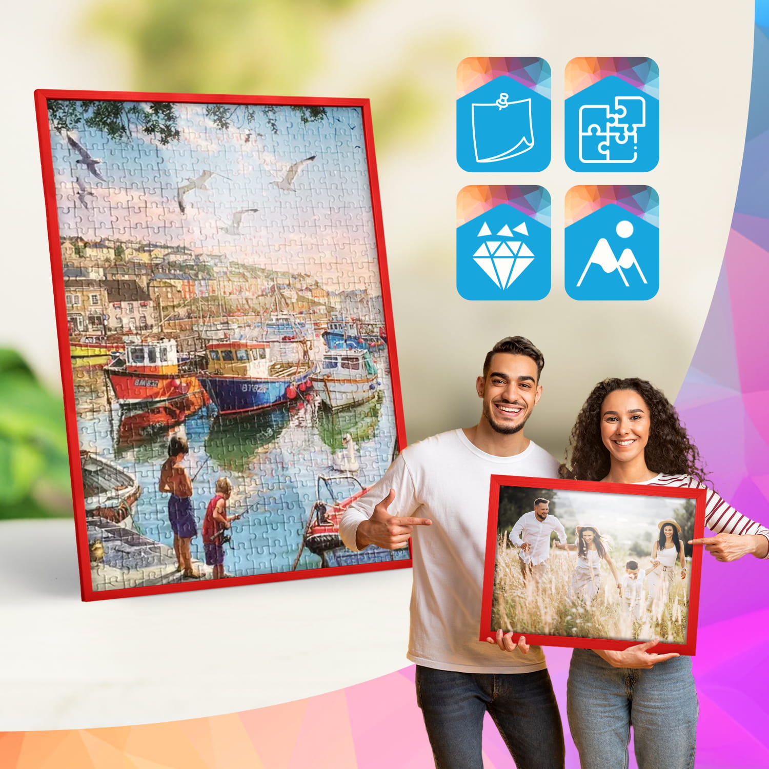 Red photo frame 32 x 48 in (80 x 120 cm), made of natural wood